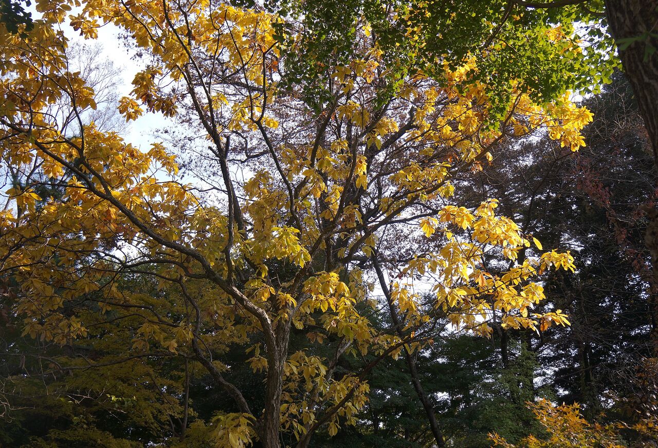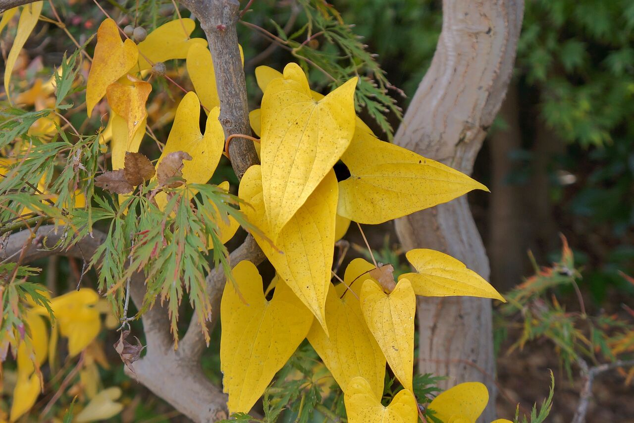 植物振興センター西園は、色付き悪し。一部が縮れ気味。東園は工事中で入園できない。