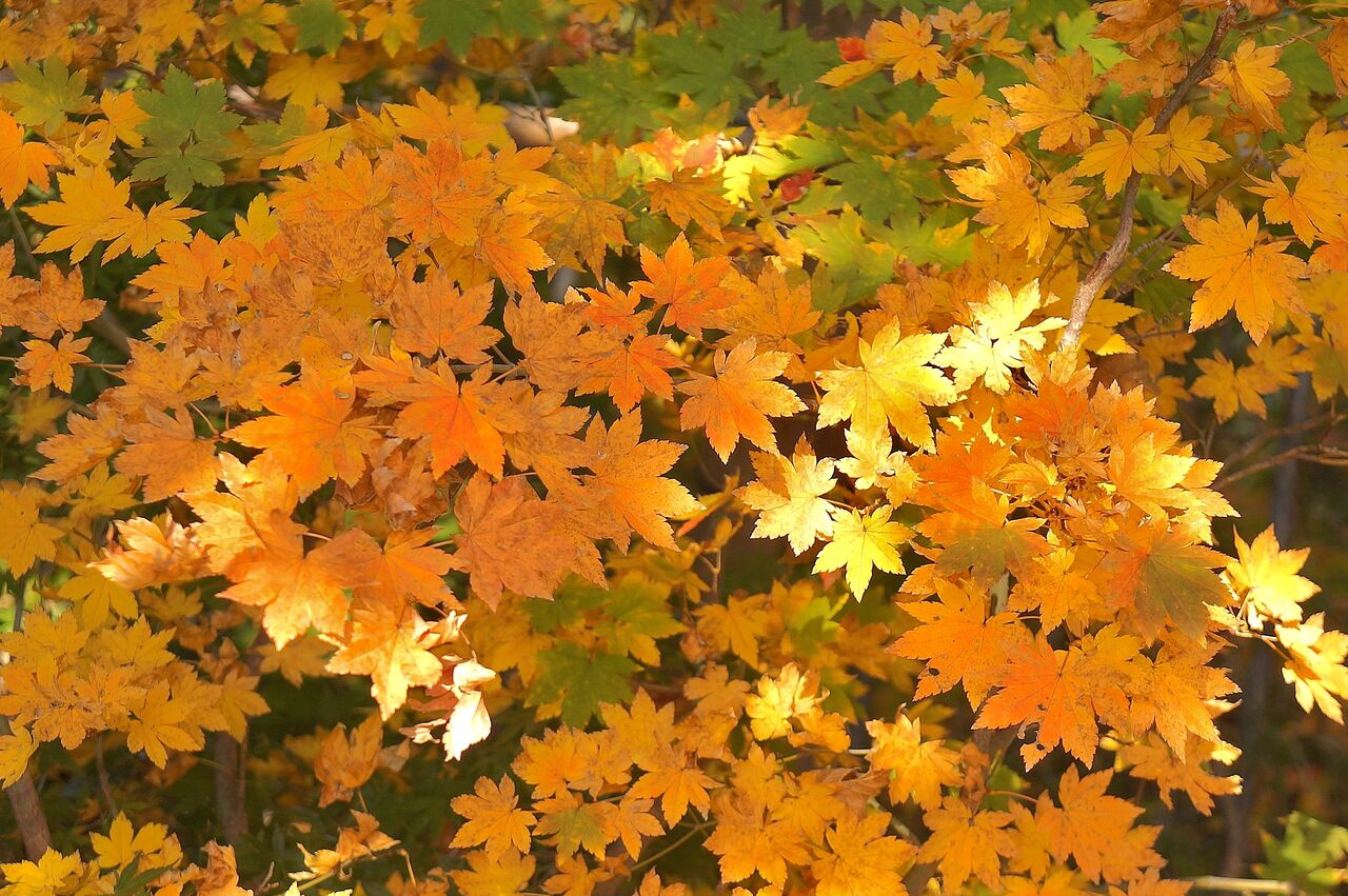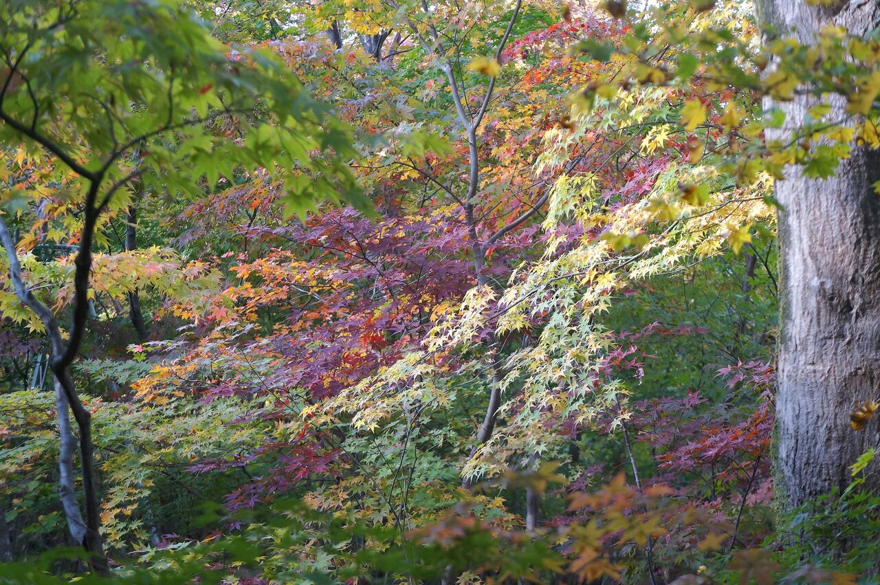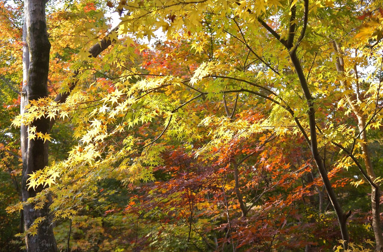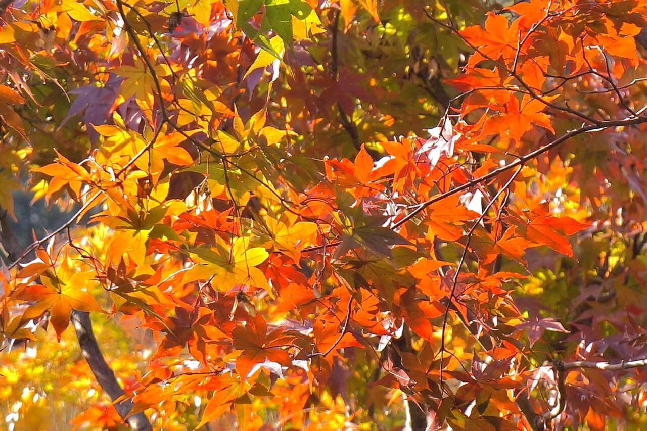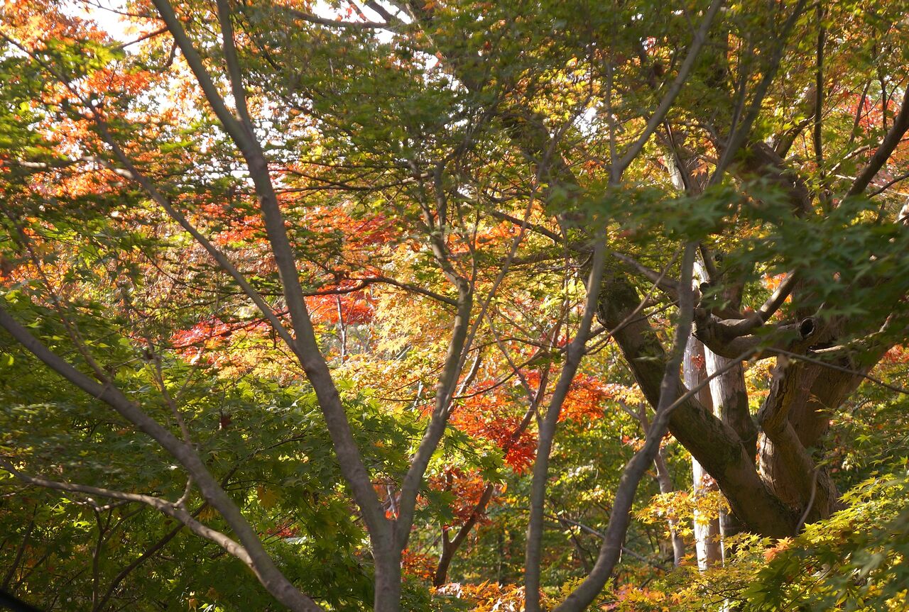 むしろ、こちらでは早めかなと思って、本日11/20に太平山にモミジ狩りに出かけたのですが、さっぱりでした。謙信平でも切取り紅葉写真に終始してしまいました。