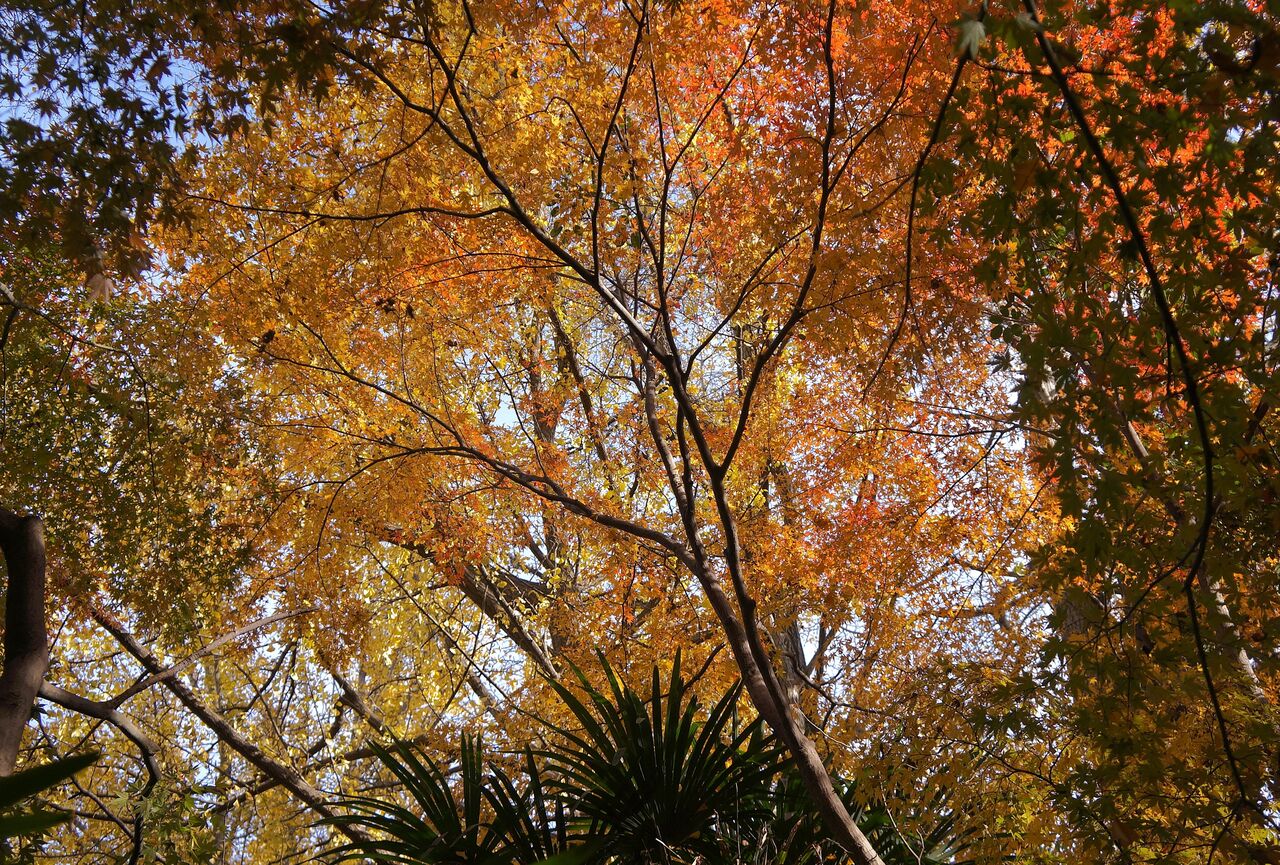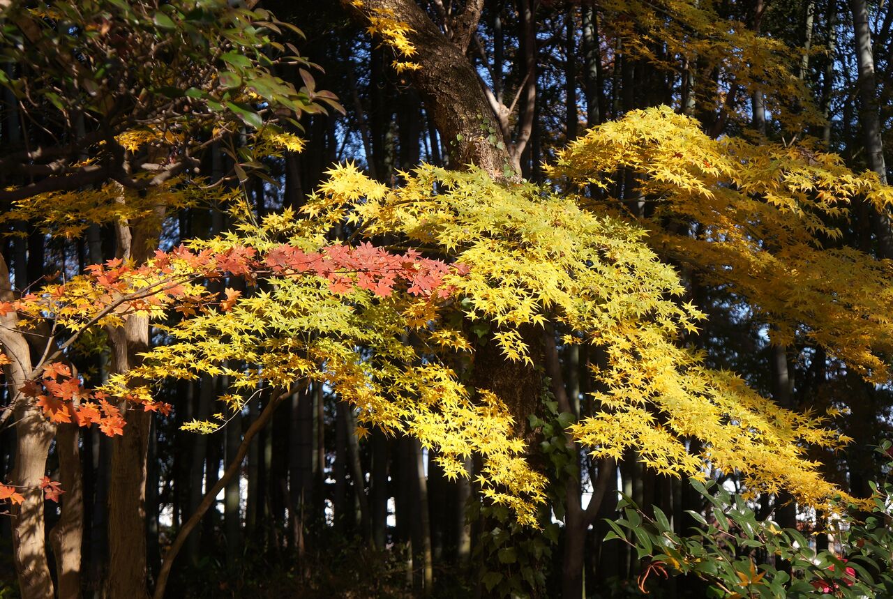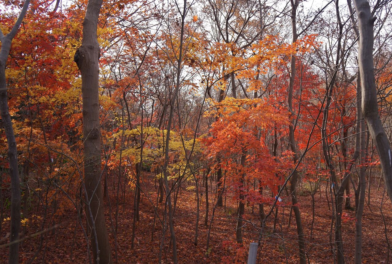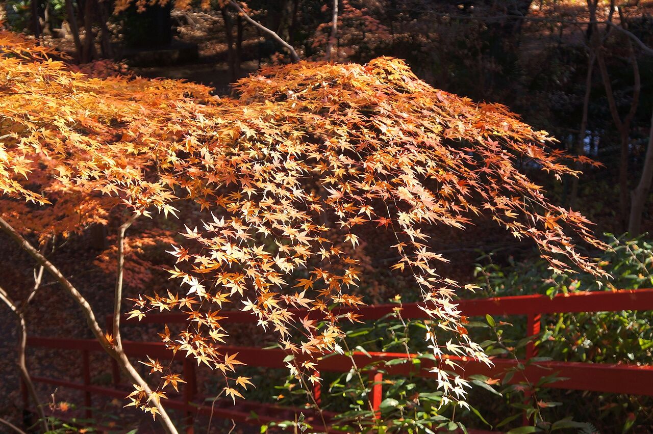 植物振興センター西園の超裏口から侵入。真っ赤なモミジがあったが、暗くて写真にならなかった。
