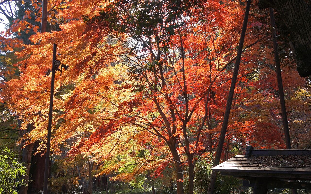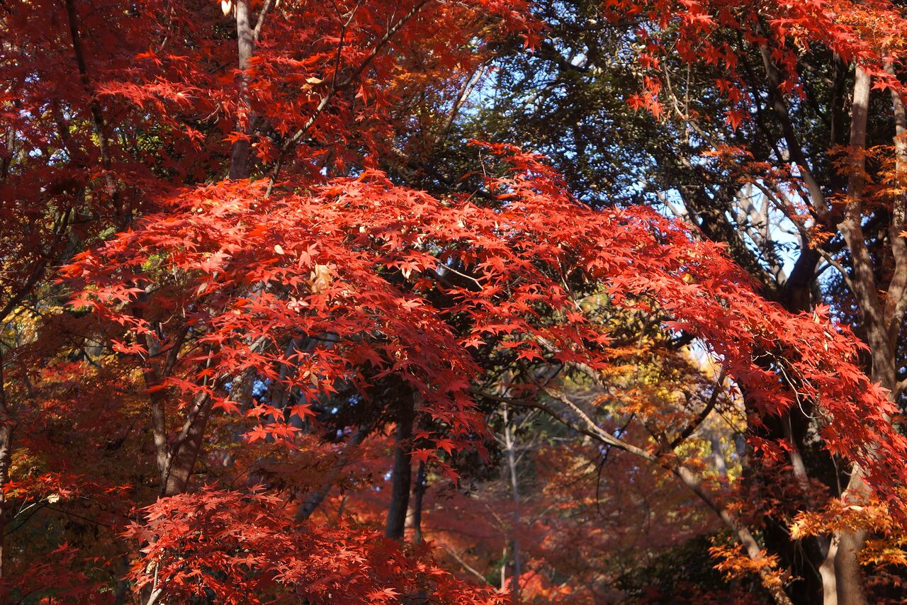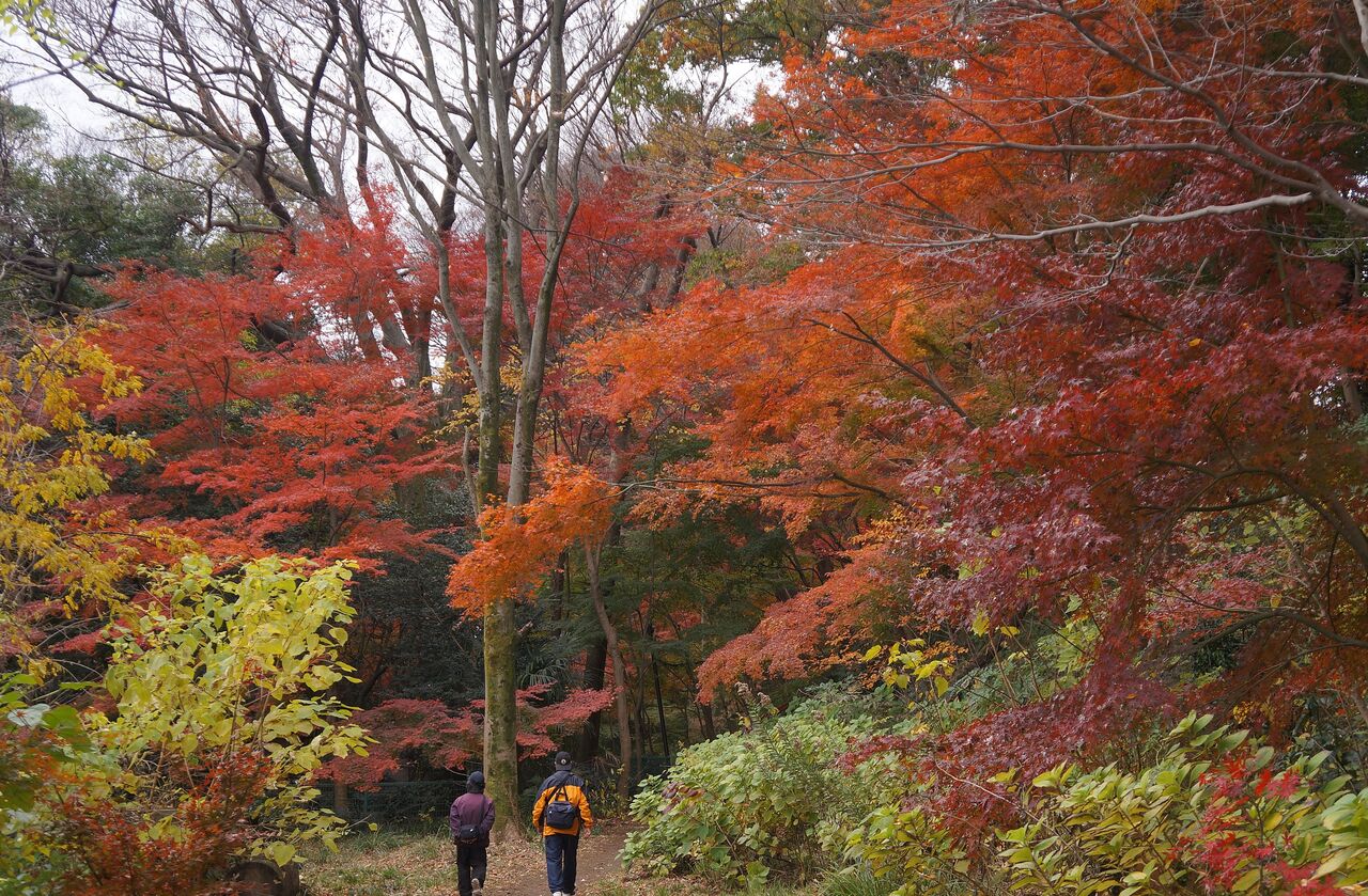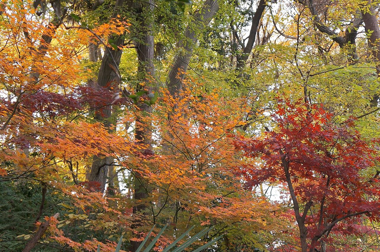 植物振興センター西園の超裏口から侵入。真っ赤なモミジがあったが、暗くて写真にならなかった。
