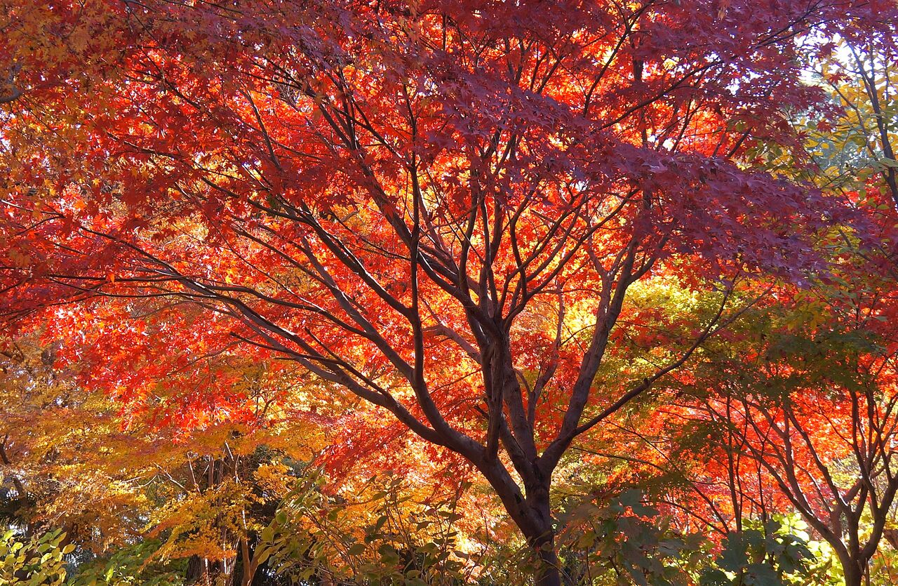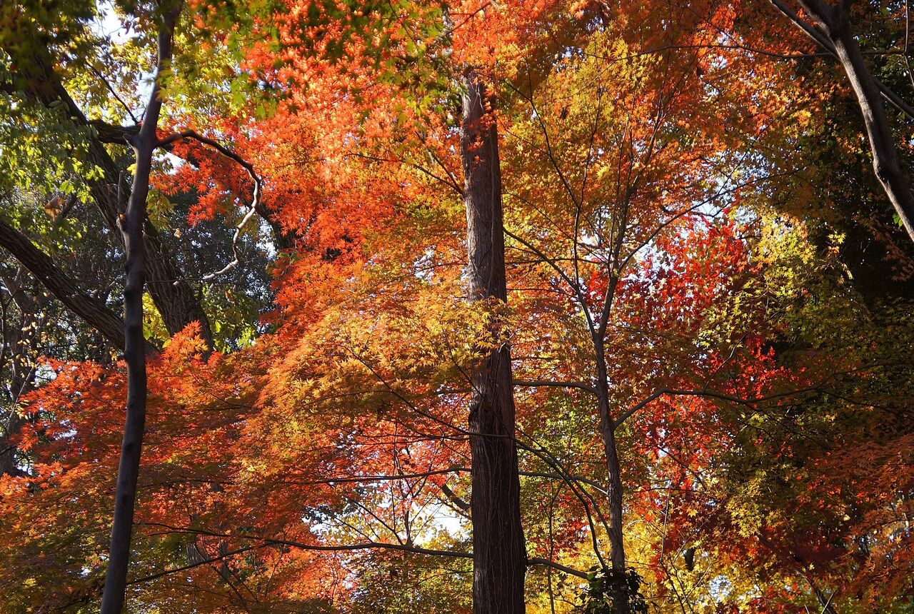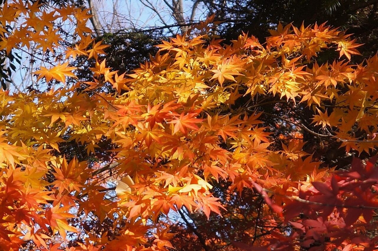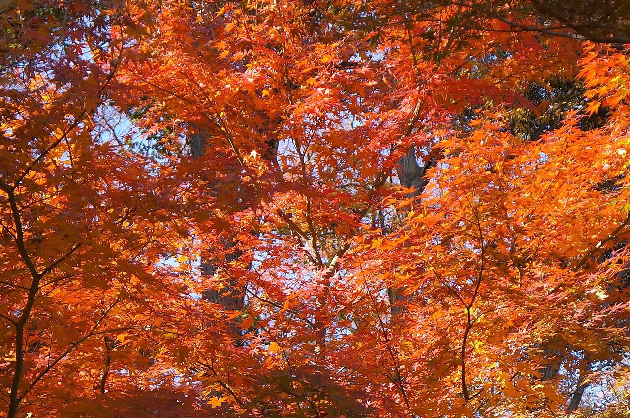 植物振興センター西園の超裏口から侵入。真っ赤なモミジがあったが、暗くて写真にならなかった。