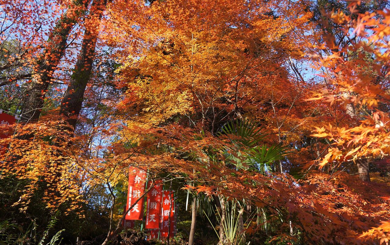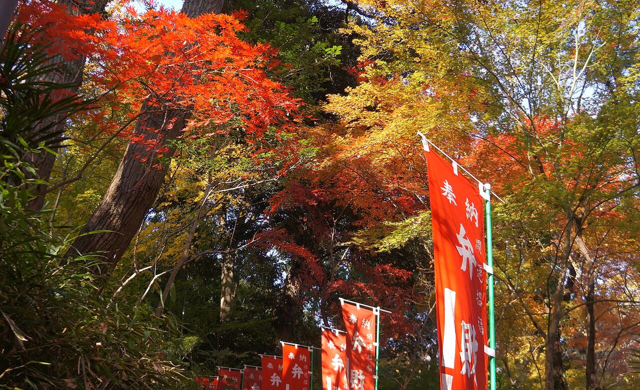 弁財天裏口。おおっ、紅葉しておる。こんな曇りの日でもモミジ見物の人々がいらっしゃいました。