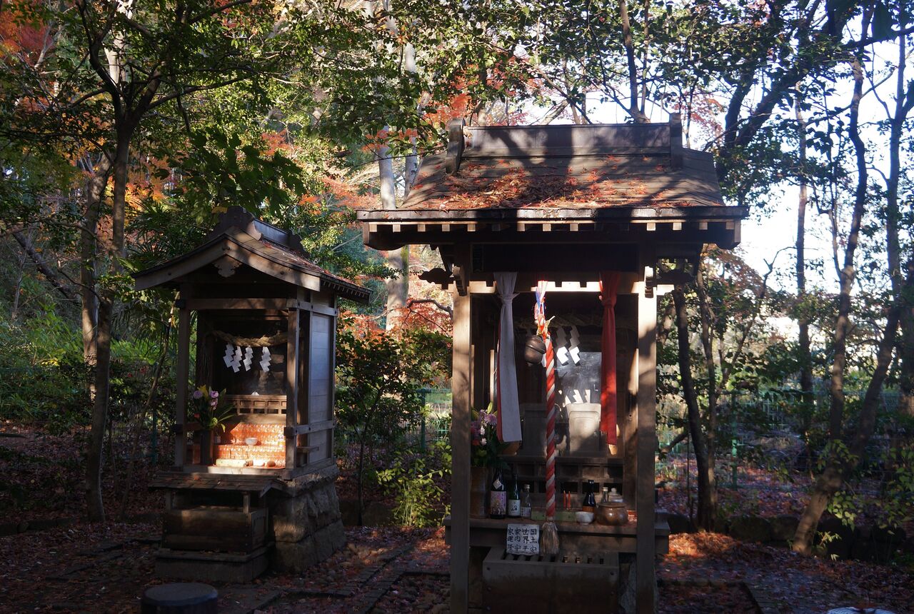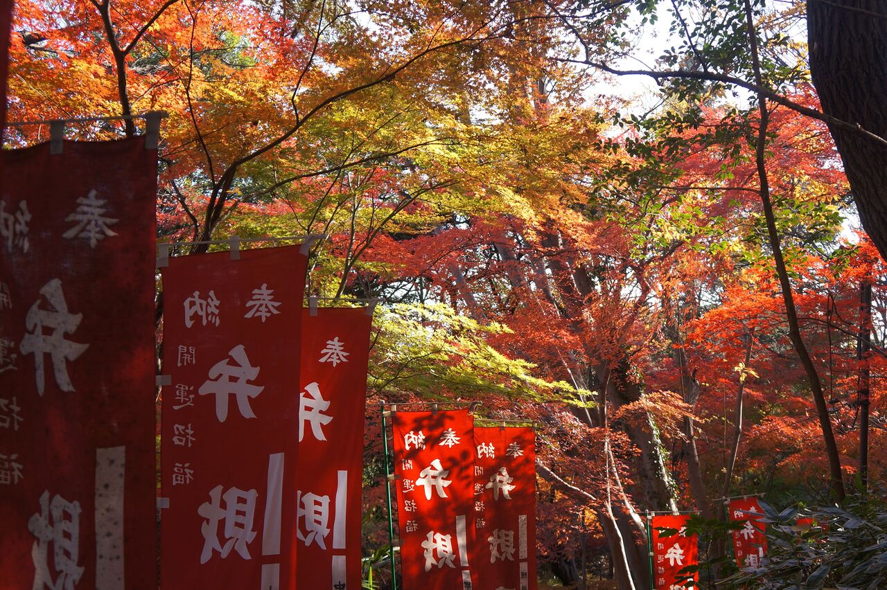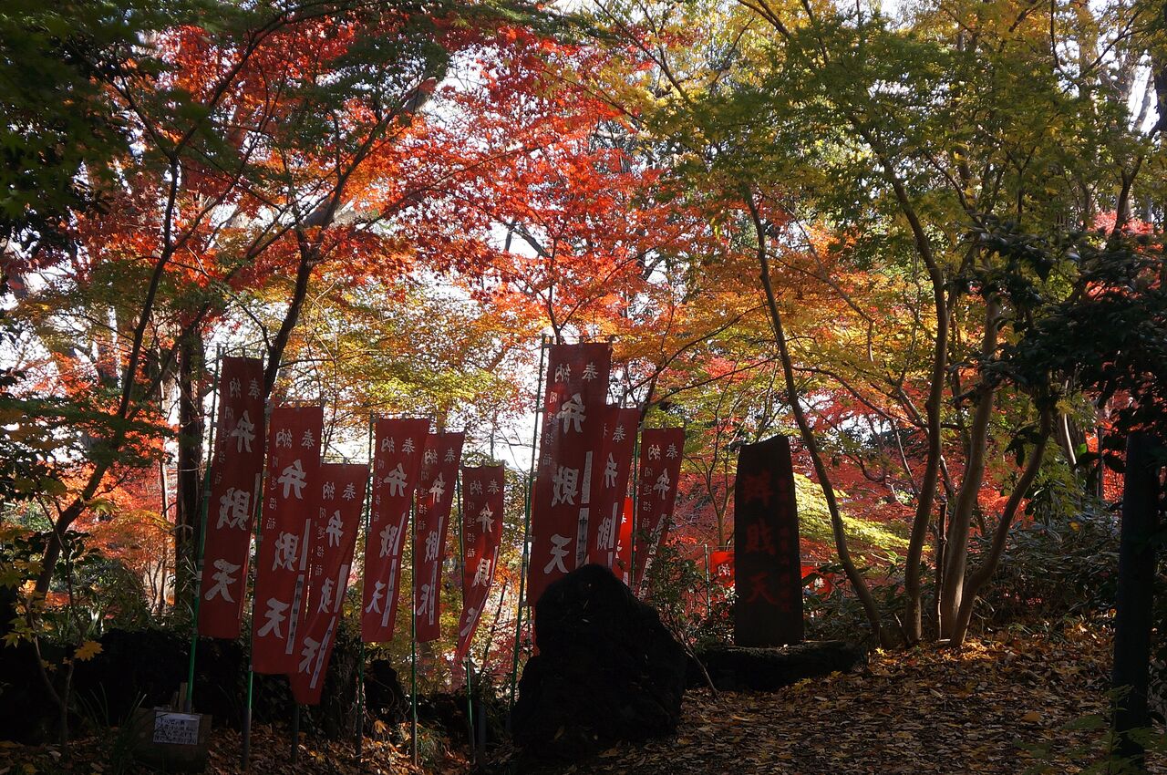 植木屋さんの紅葉が終わると、斜面林の弁財天で紅葉がはじまります。以前は12月に入ると、人影がまばらになっていたのですがねぇ~。