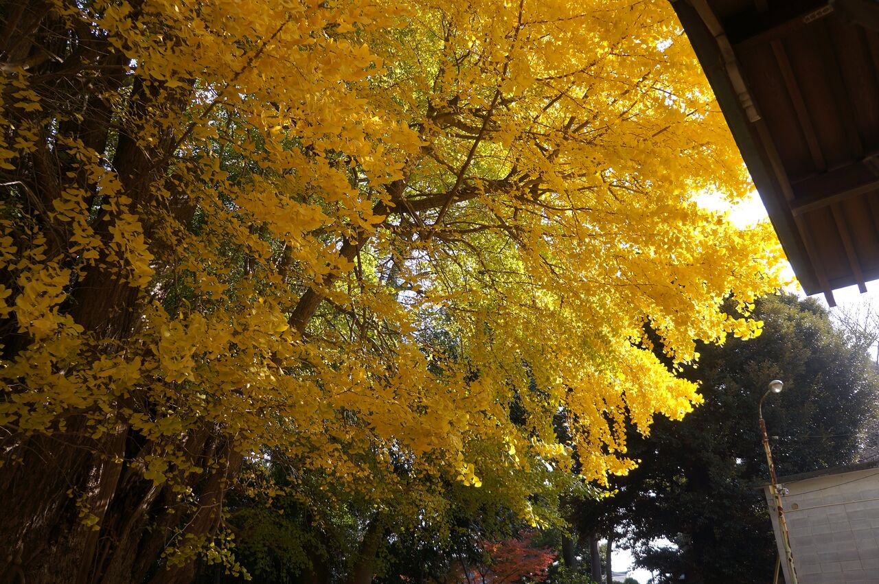 峯ヶ丘八幡神社。ここの大イチョウはなかなか色付かないが、