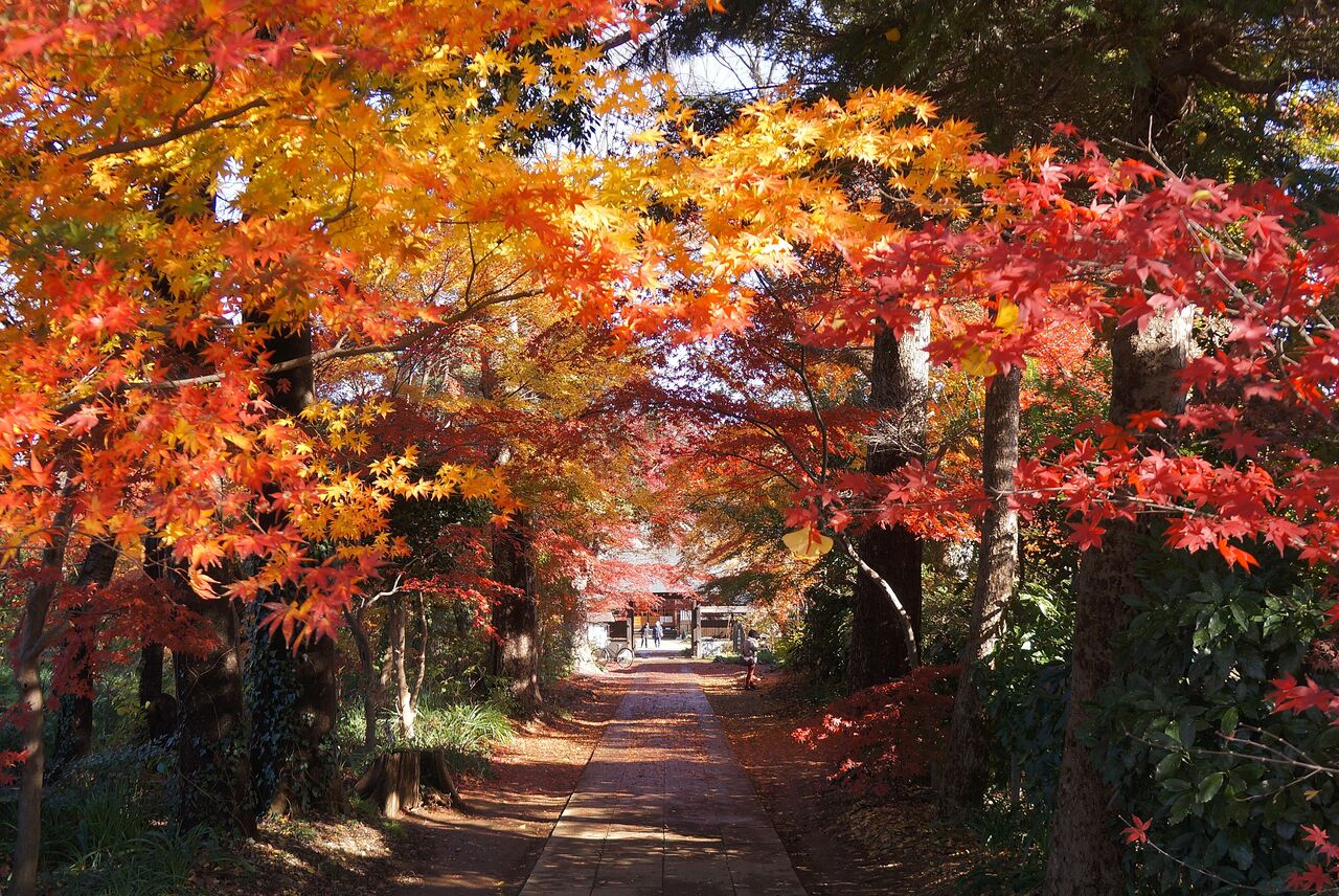 興禅院参道。ややっ、こちらは幾分風雨によってモミジが散ってしまったのか。