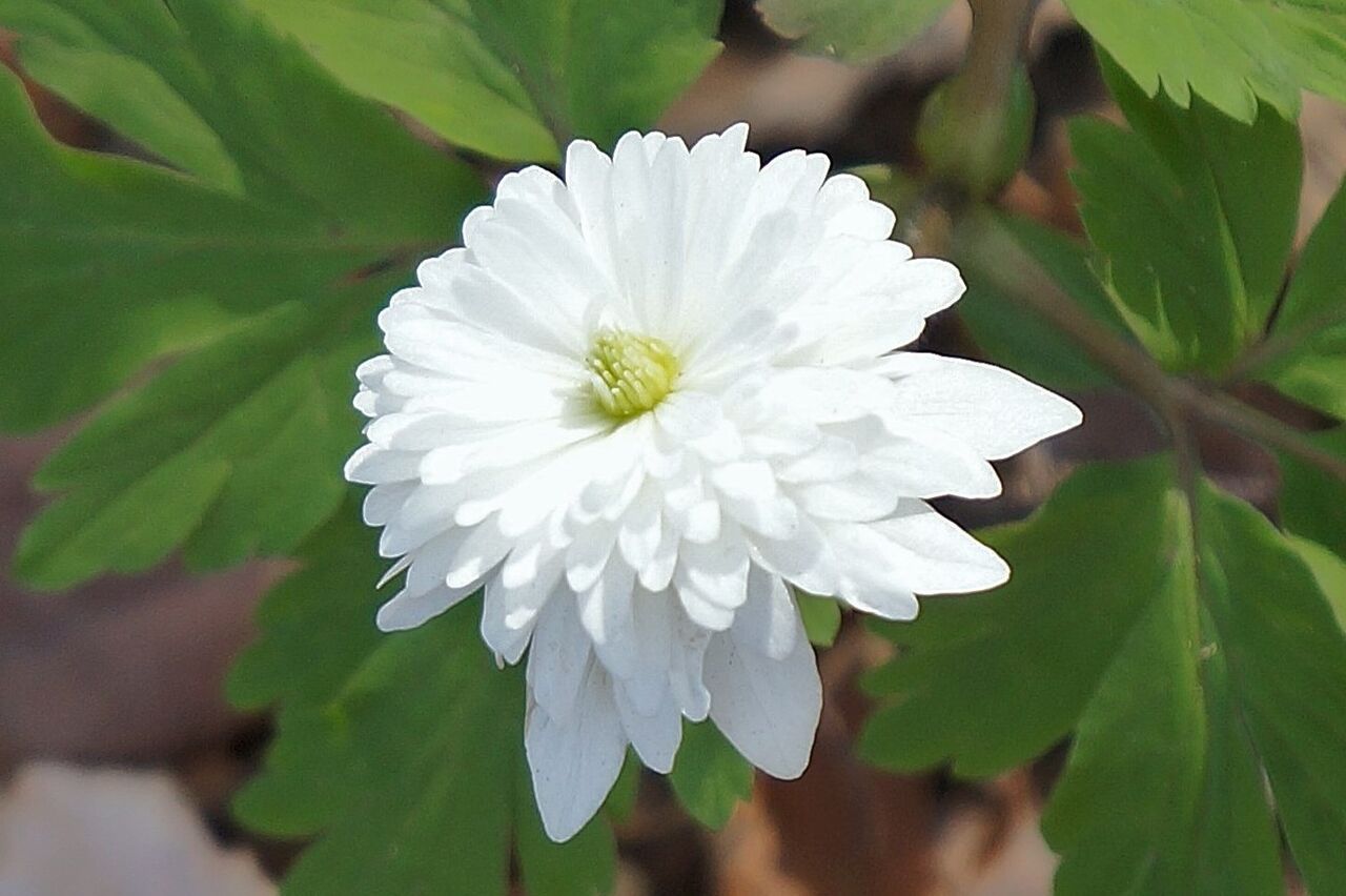 目当てのイチゲ類を捜しに、斜面林を散策すると、わずかにキクザキイチリンソウが咲いていた。