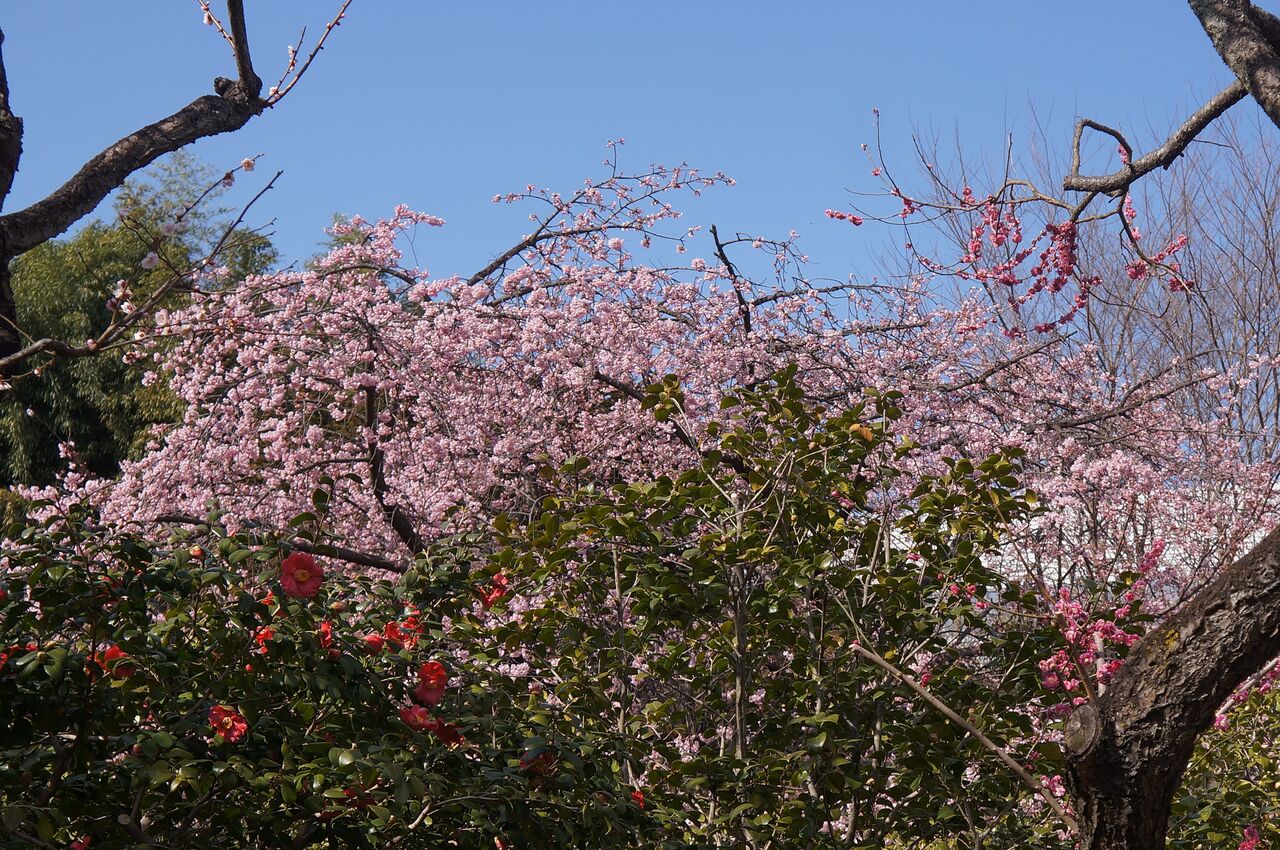 興禅院隣地。安行寒桜と梅がゴチャゴチャと。