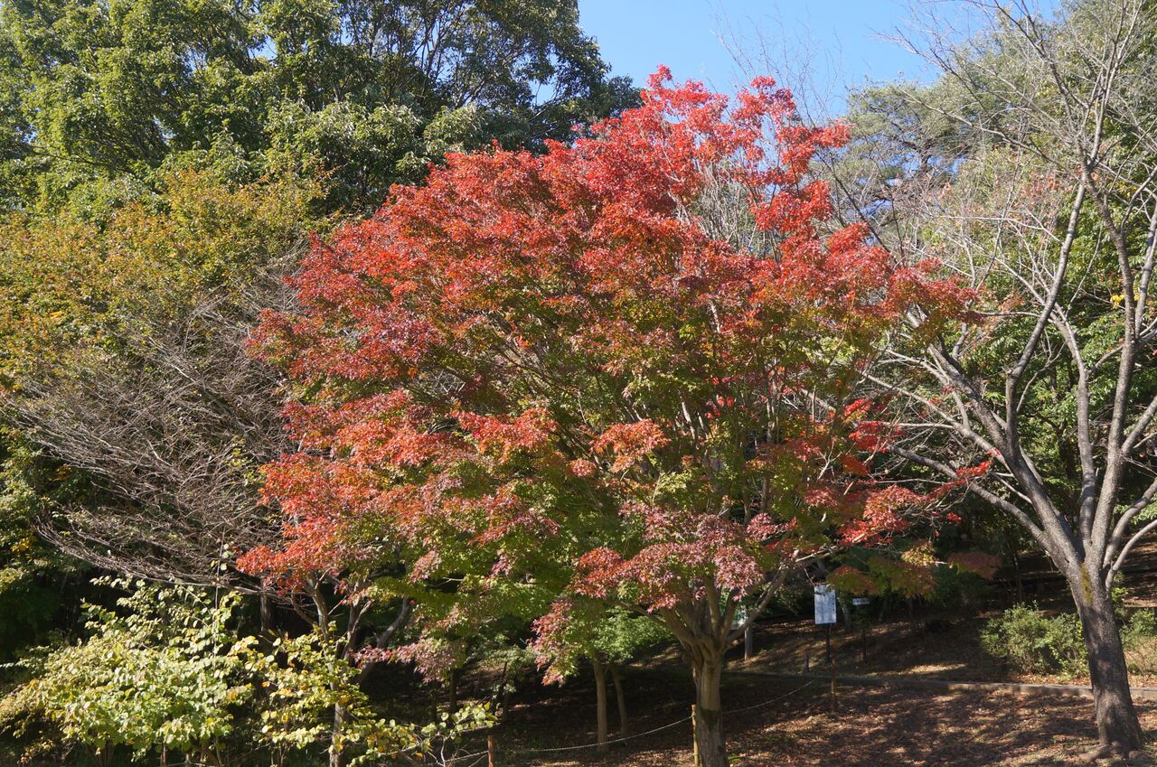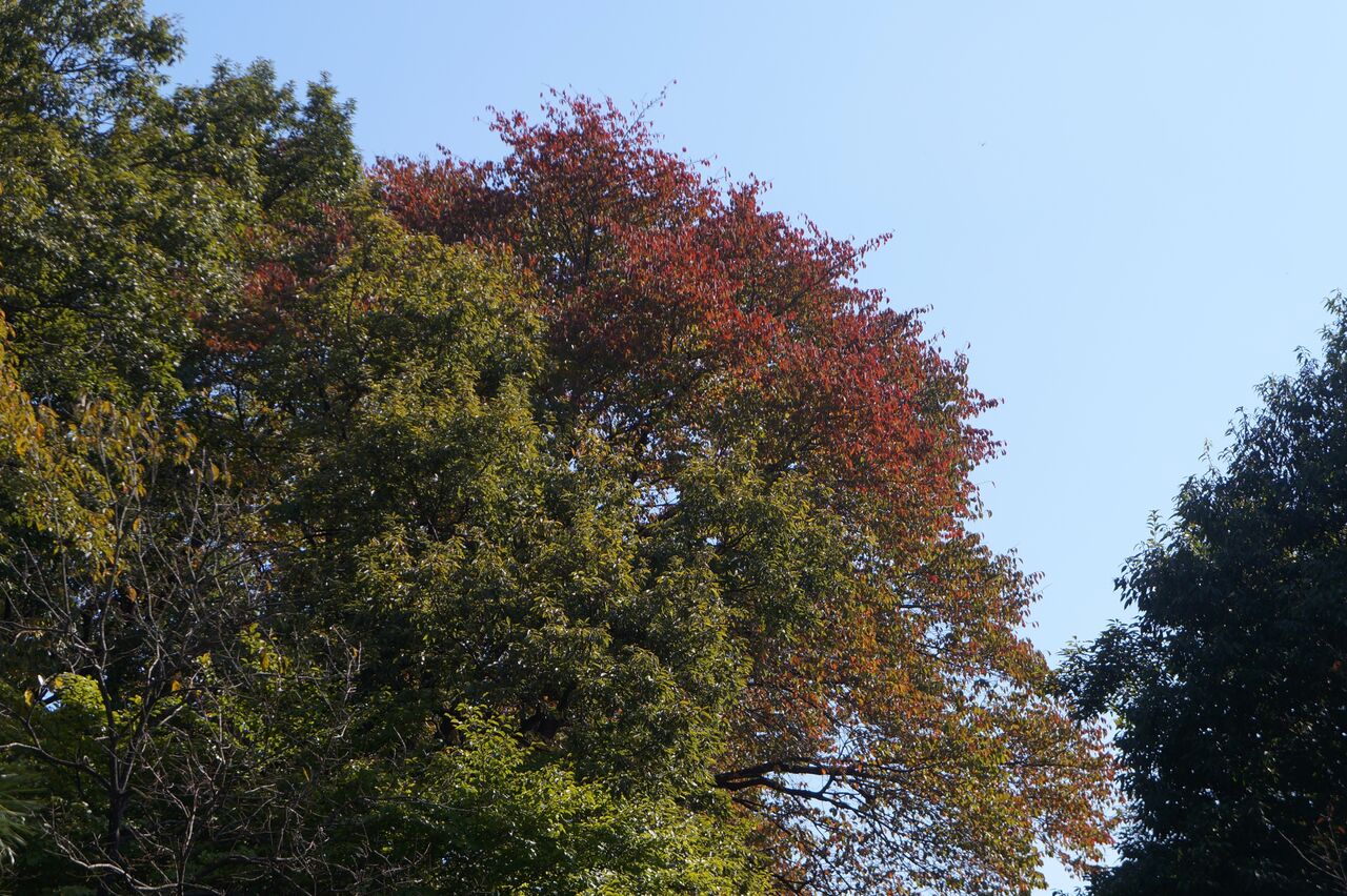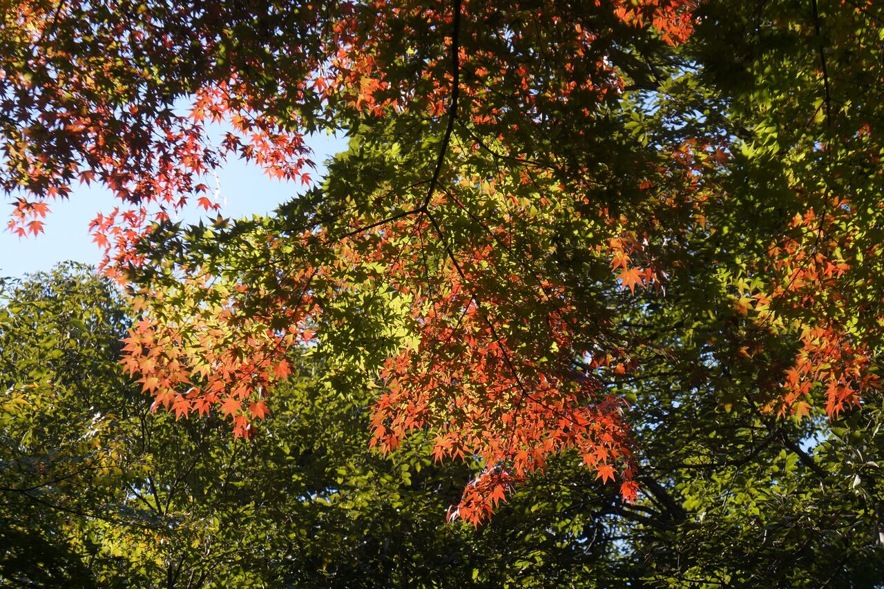 東駐車場そばにて。カエデが部分的に色づいていた。