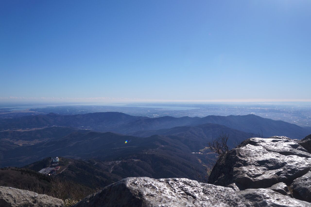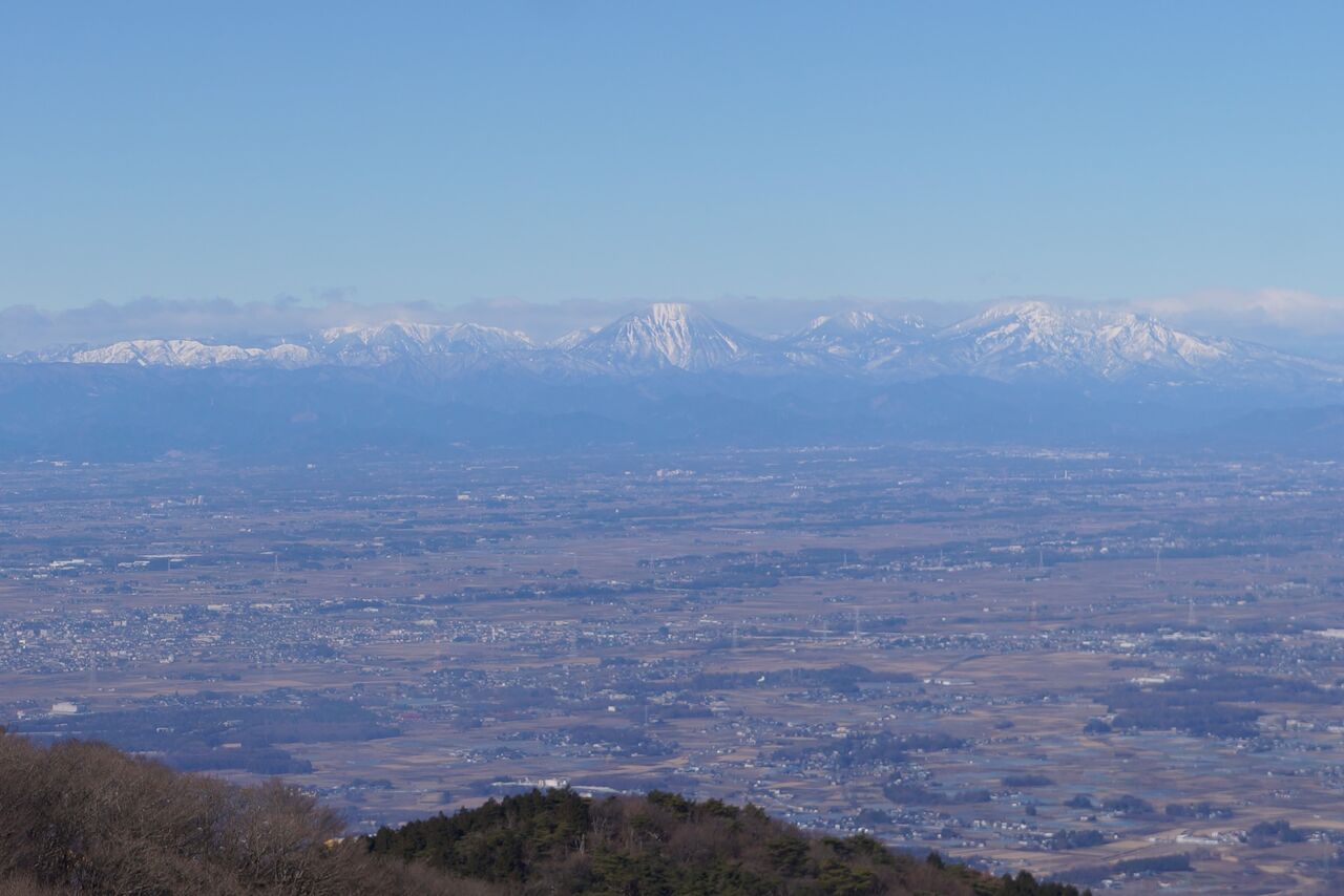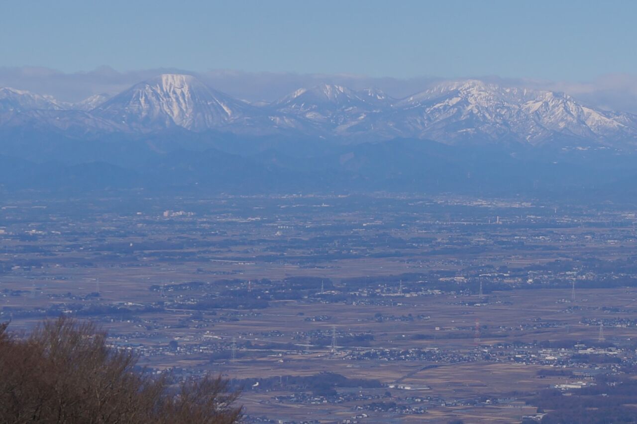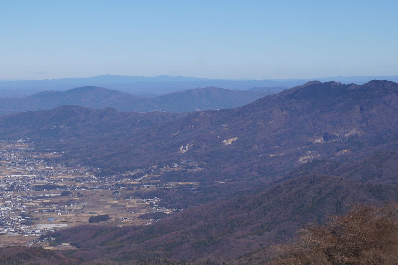 展望台から加波山、難台山、吾国山。ムムッ、ここからは完全に南台丈(難台山)が加波山と吾国山の間に見える。