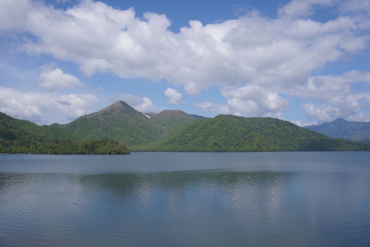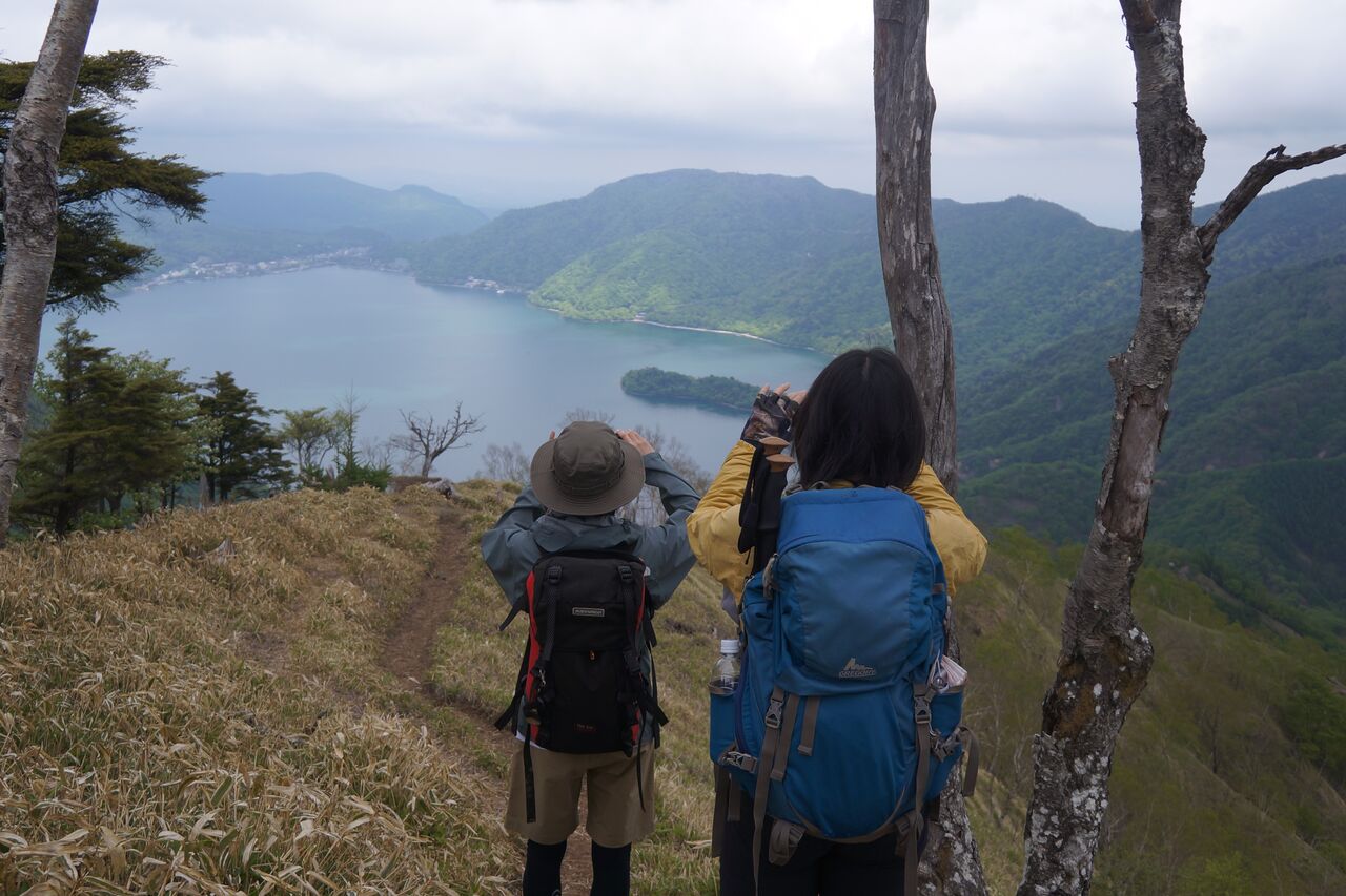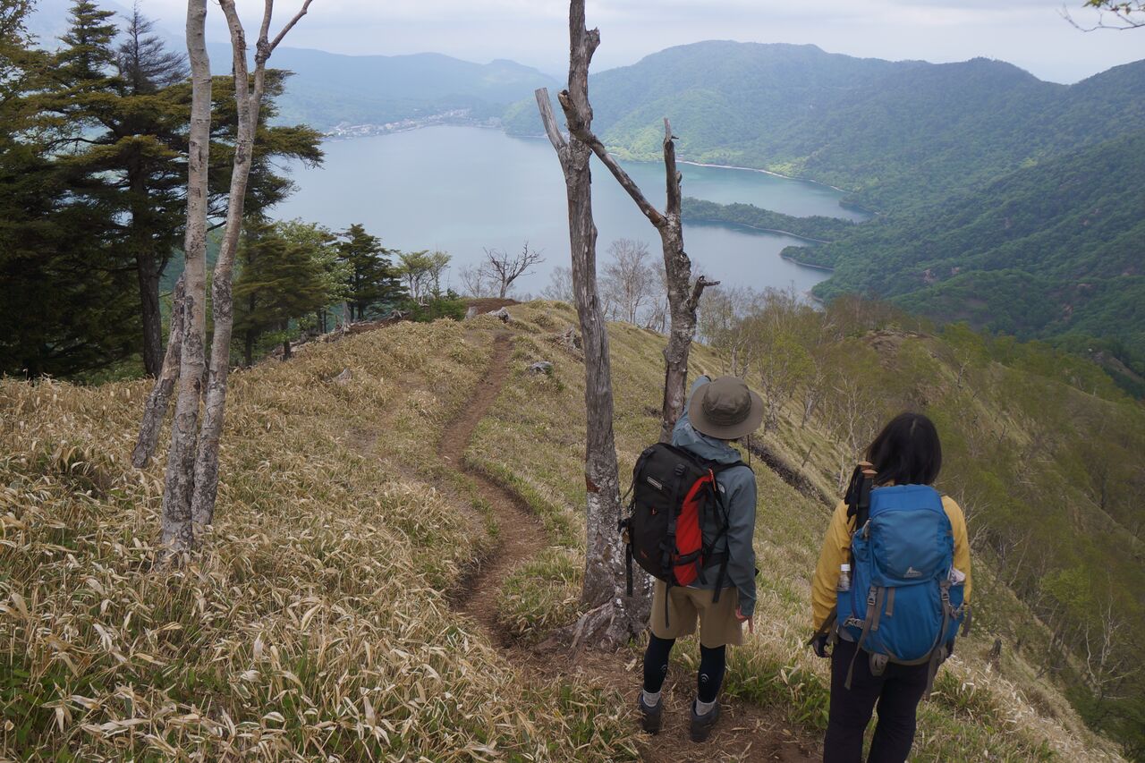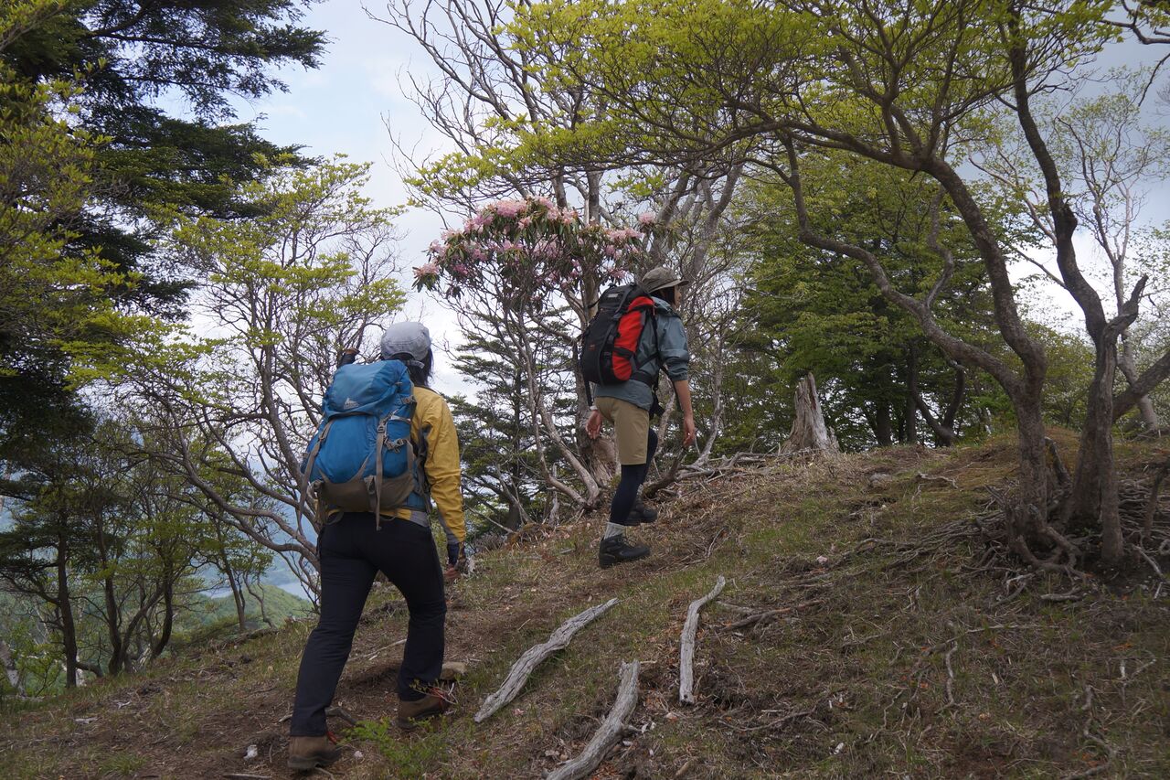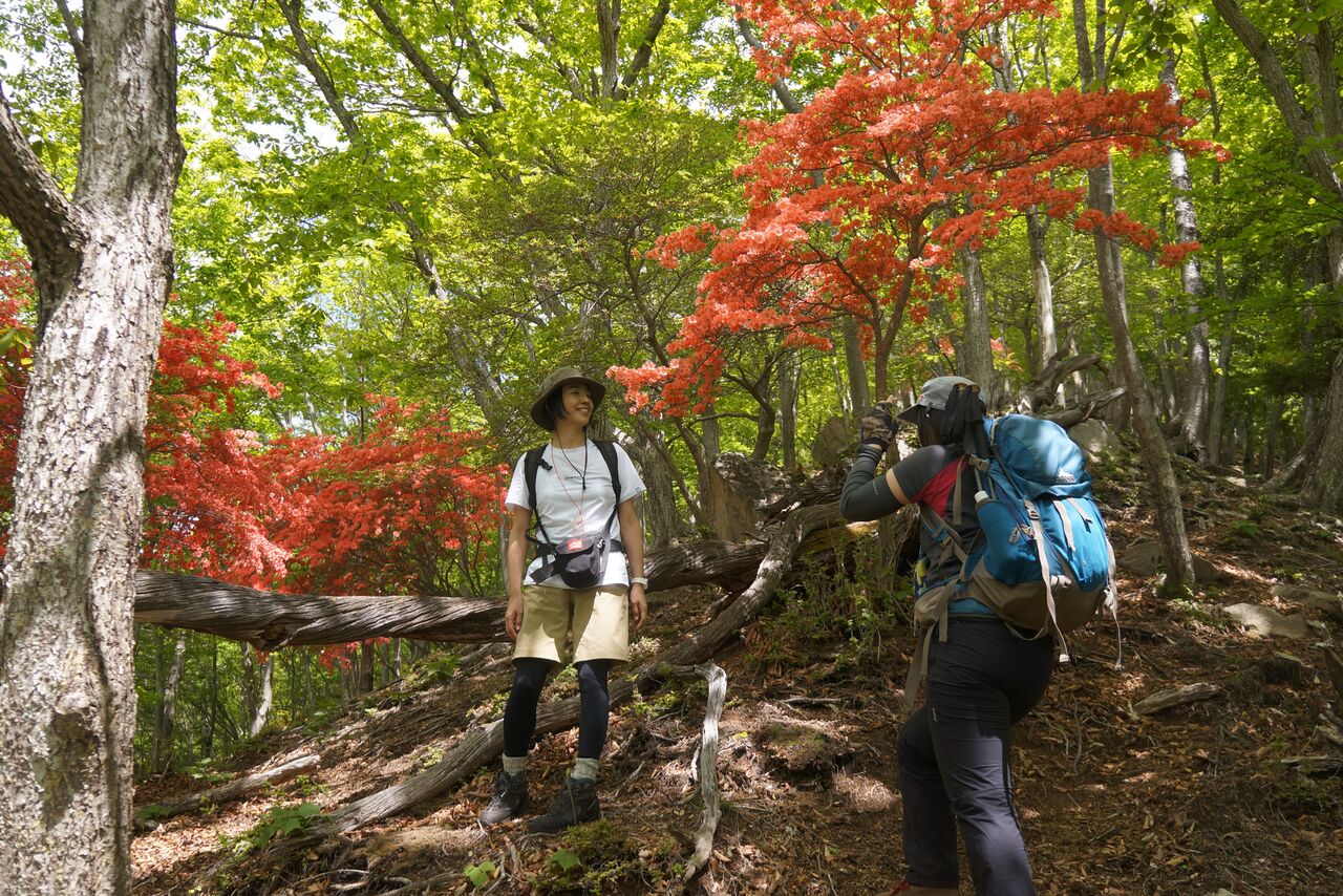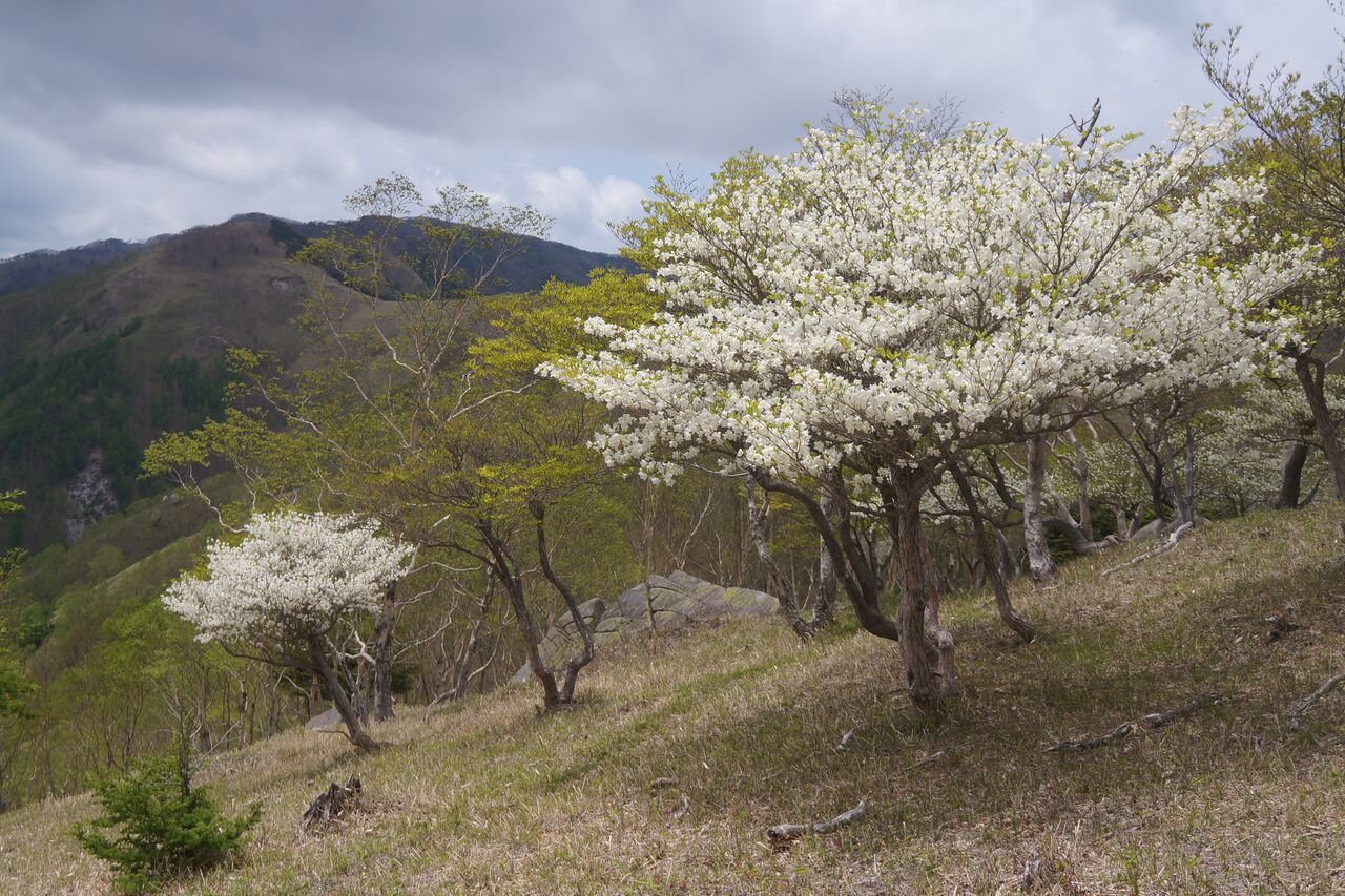 社山周辺のシロヤシオは南岸尾根から少し下がった所(大日尾根分岐~黒桧岳の北面)で濃密に繁茂しているのですが、今回のコースでは点在程度です。それでもちょうどよいタイミングみたいでした。できれば快晴の下で群青色の中禅寺湖を見てもらいたかったです。