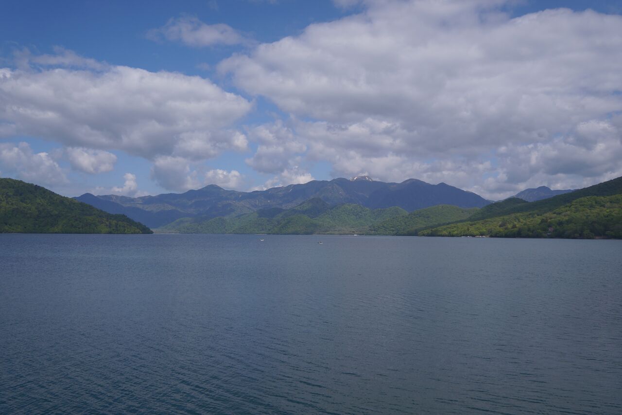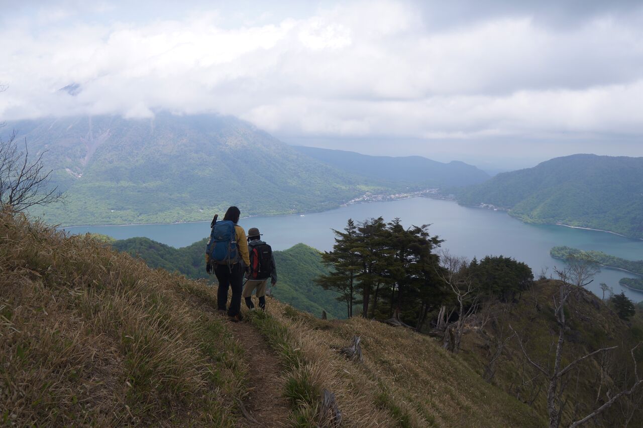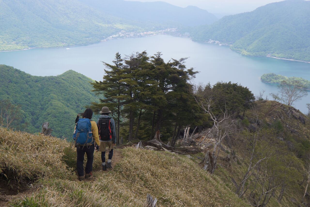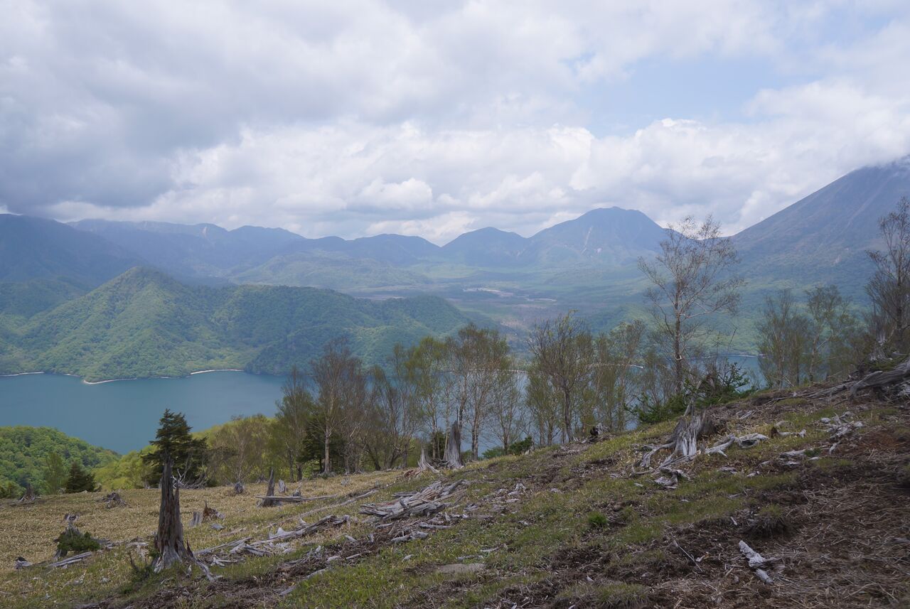 阿世潟沢源頭部から男体山と中禅寺湖。中禅寺湖は鉛色になりつつある。