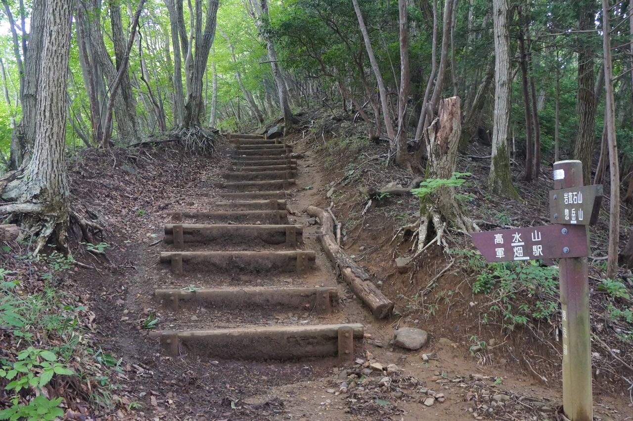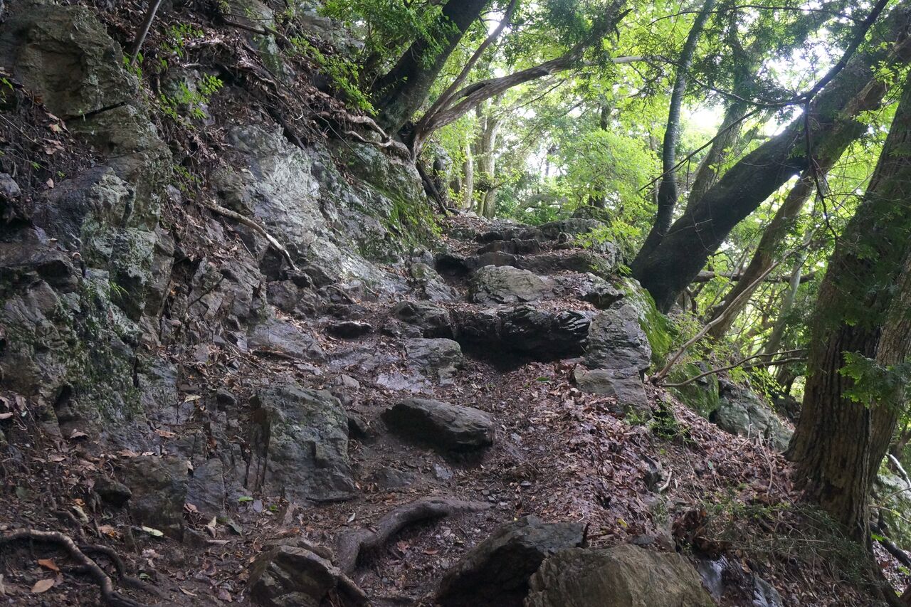 岩茸石山を下って、登り返し。ややっ、階段道か!