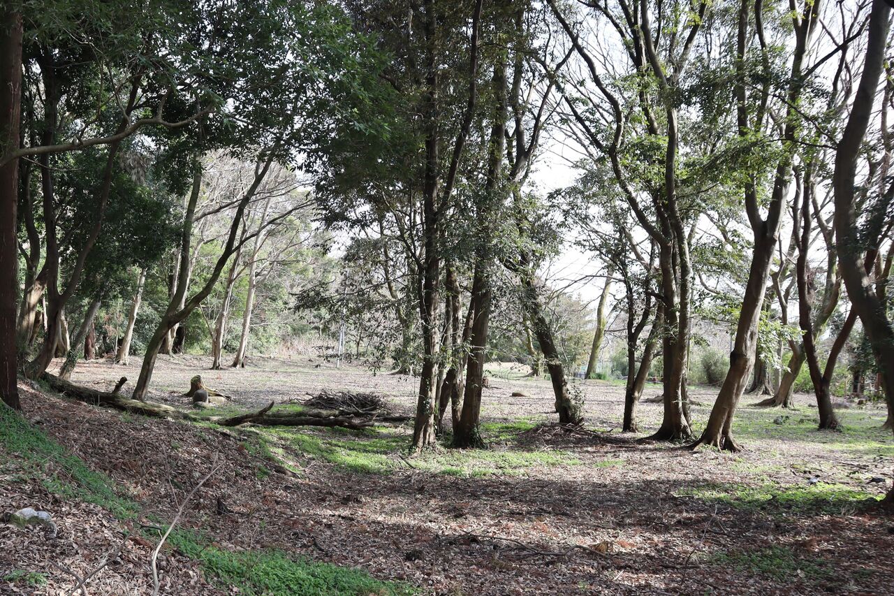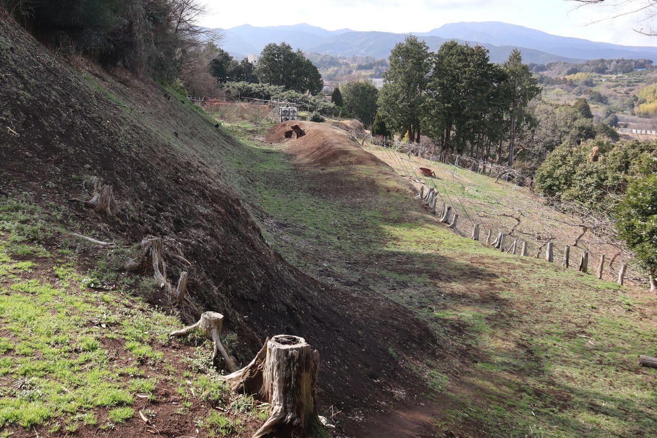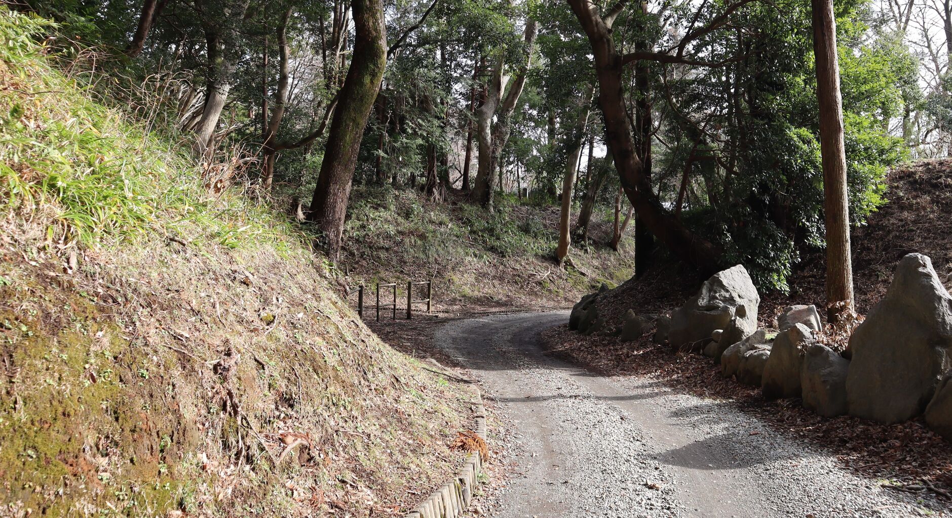 稲荷森付近の掘。堀の外側には掻き上げ土塁。