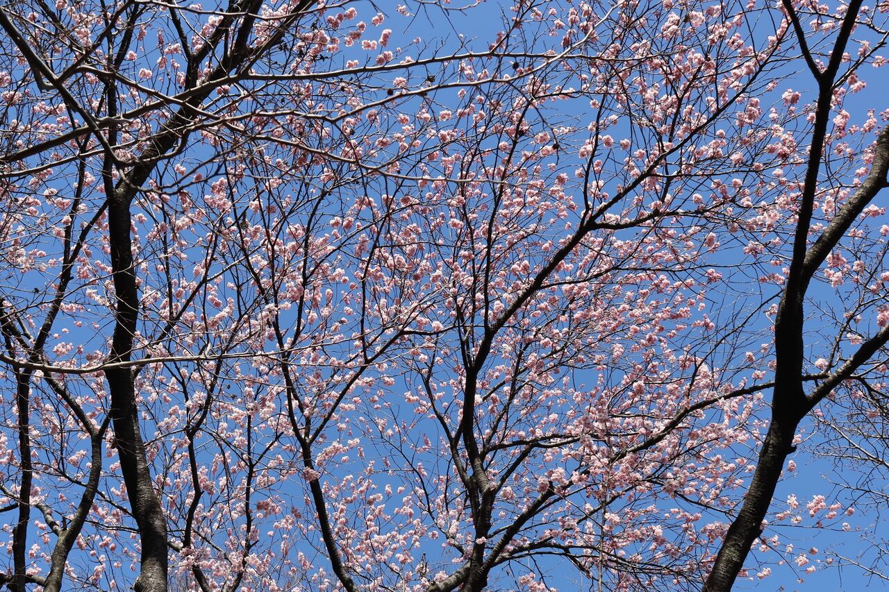 椿寒桜はこれまでも二月中に咲くことがありましたが、やっぱりかなり早くに満開になりました。モクレンなんかも早くもツボミが膨らみかけていました。