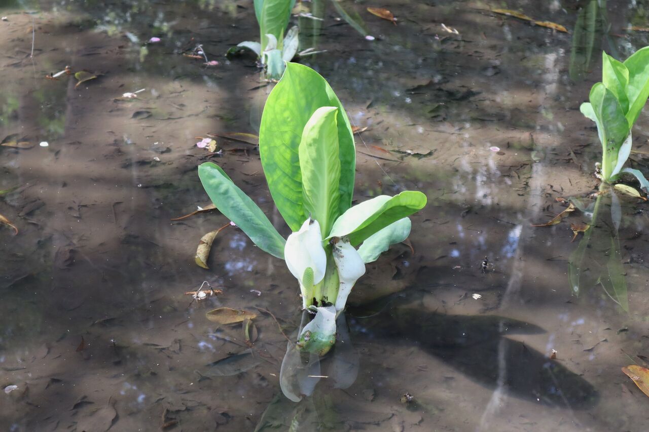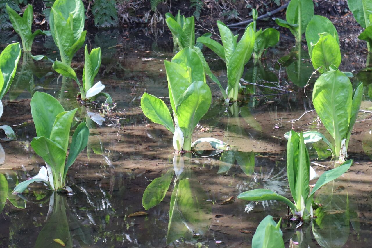 一輪草自生地。水芭蕉。