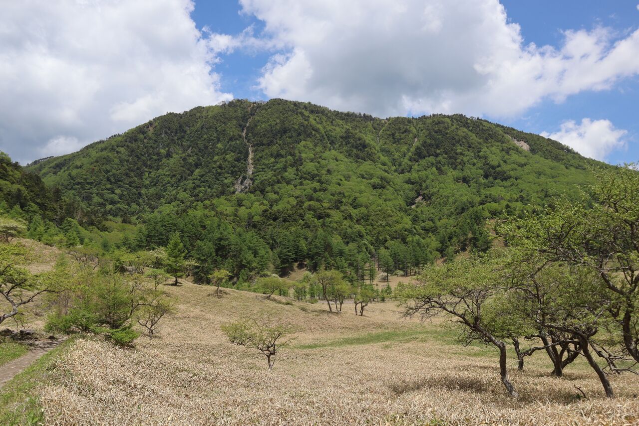 三角山は、於呂倶羅山西方の1949m峰だろう。その左下の鞍部がなつかしい金田峠。