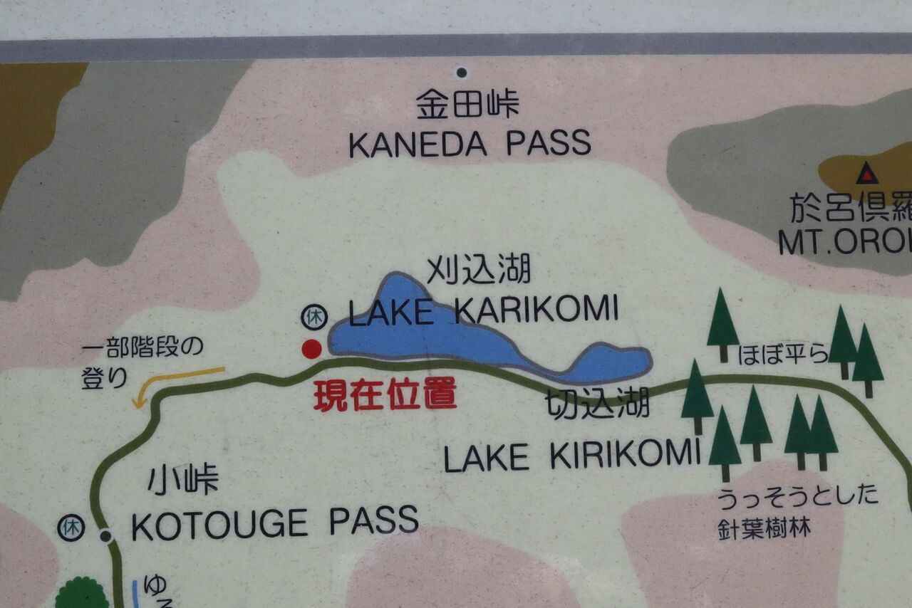ところで、刈込湖の案内板に「金田峠・KANEDA PASS」と書いてあった。俺は今まで「コンダトウゲ」だと思っていた。