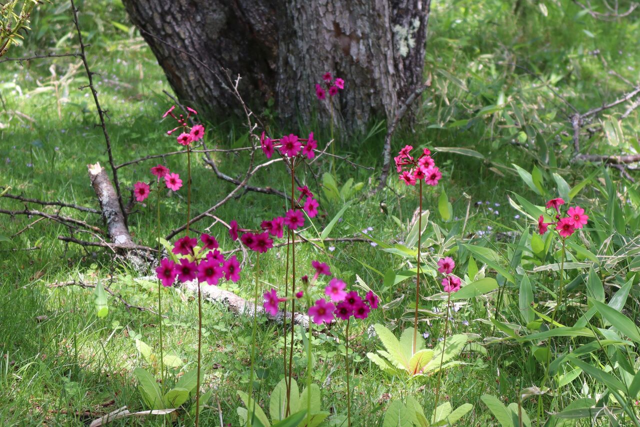 光徳温泉・アストリアホテル前に到着。ロータリーにクリンソウが咲いていた。バスの時刻を見ると、まさにバスの到着予定時間。5分遅れでやってきた湯元行のバスに乗った。ラッキー。
