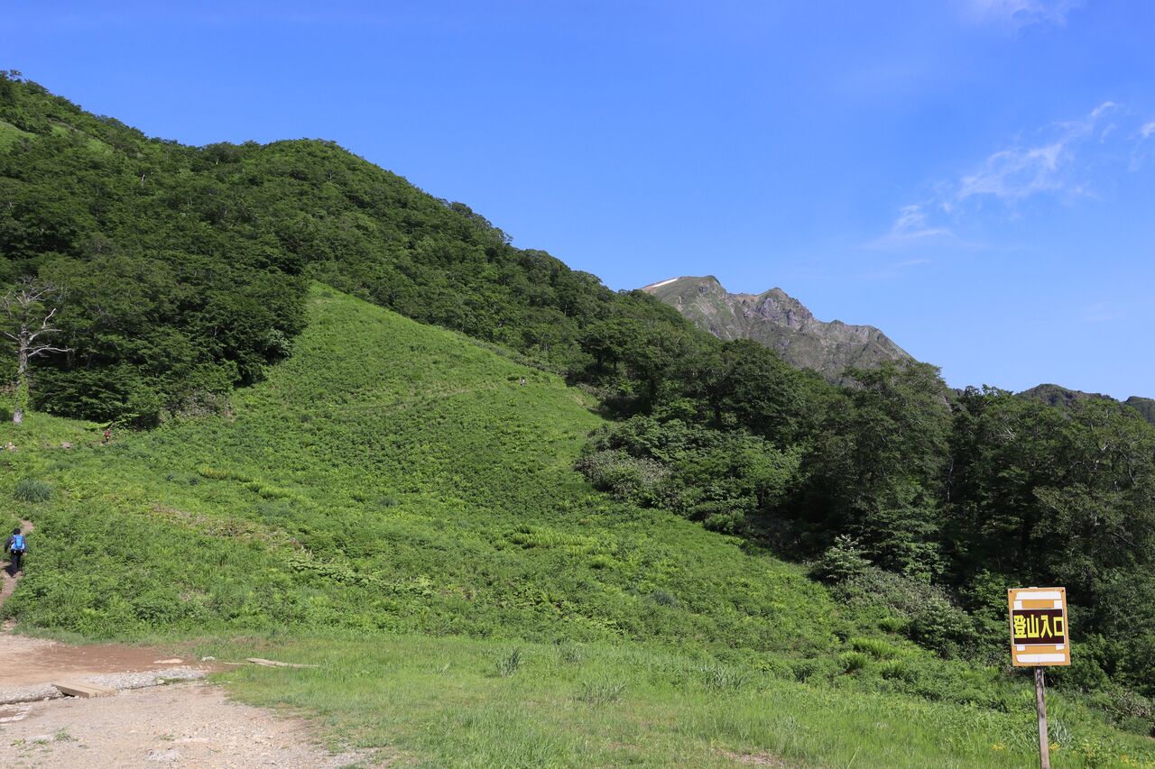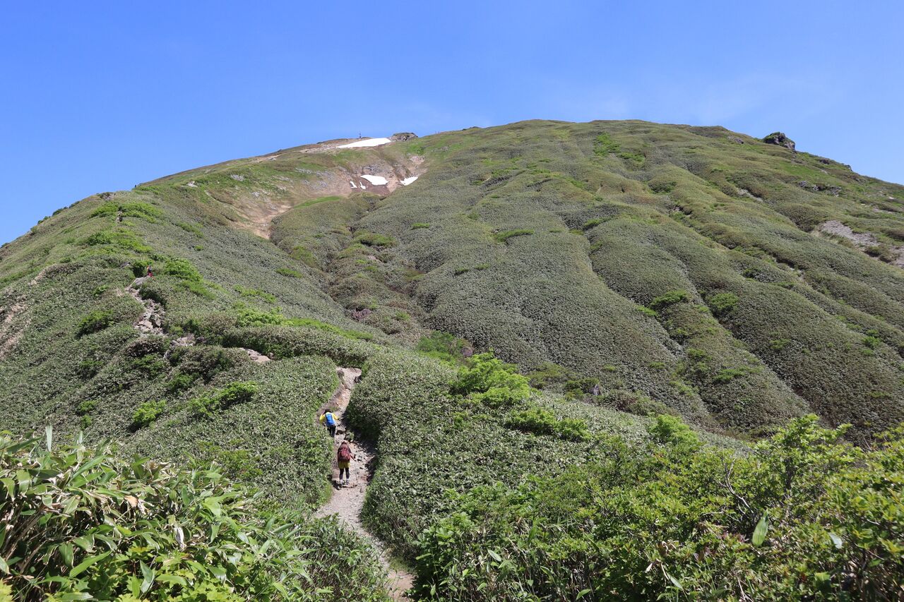 熊穴沢避難小屋を過ぎると日影はほとんどない。ギンギラギン。風が無く異常に暑い。なだらかに見えるが、今日登った感じでは相当急に思えた。何回か登ったことがあるが、そう思ったことは無かった。