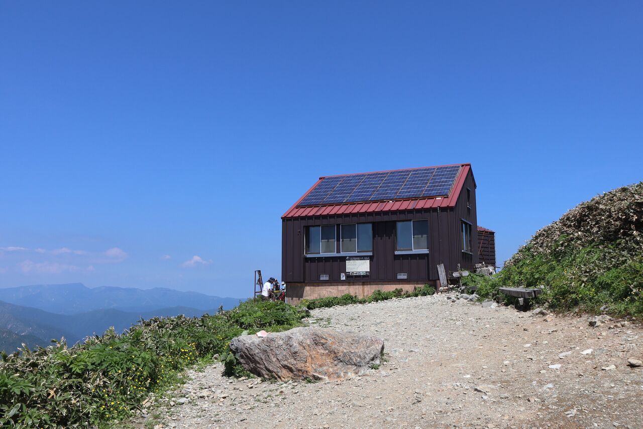 そして、肩の小屋に到着。休憩じゃぁ~。水のガブ飲み。