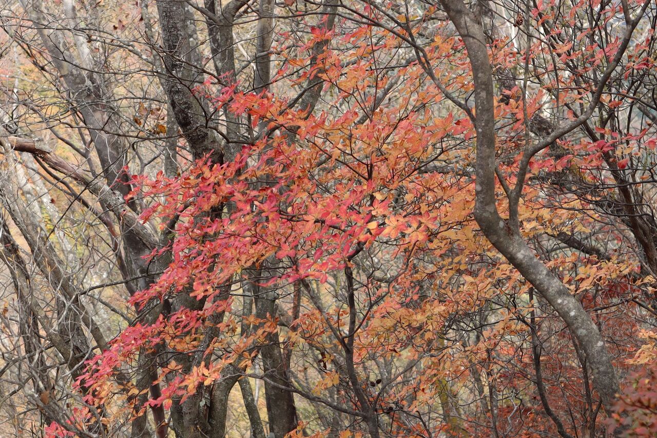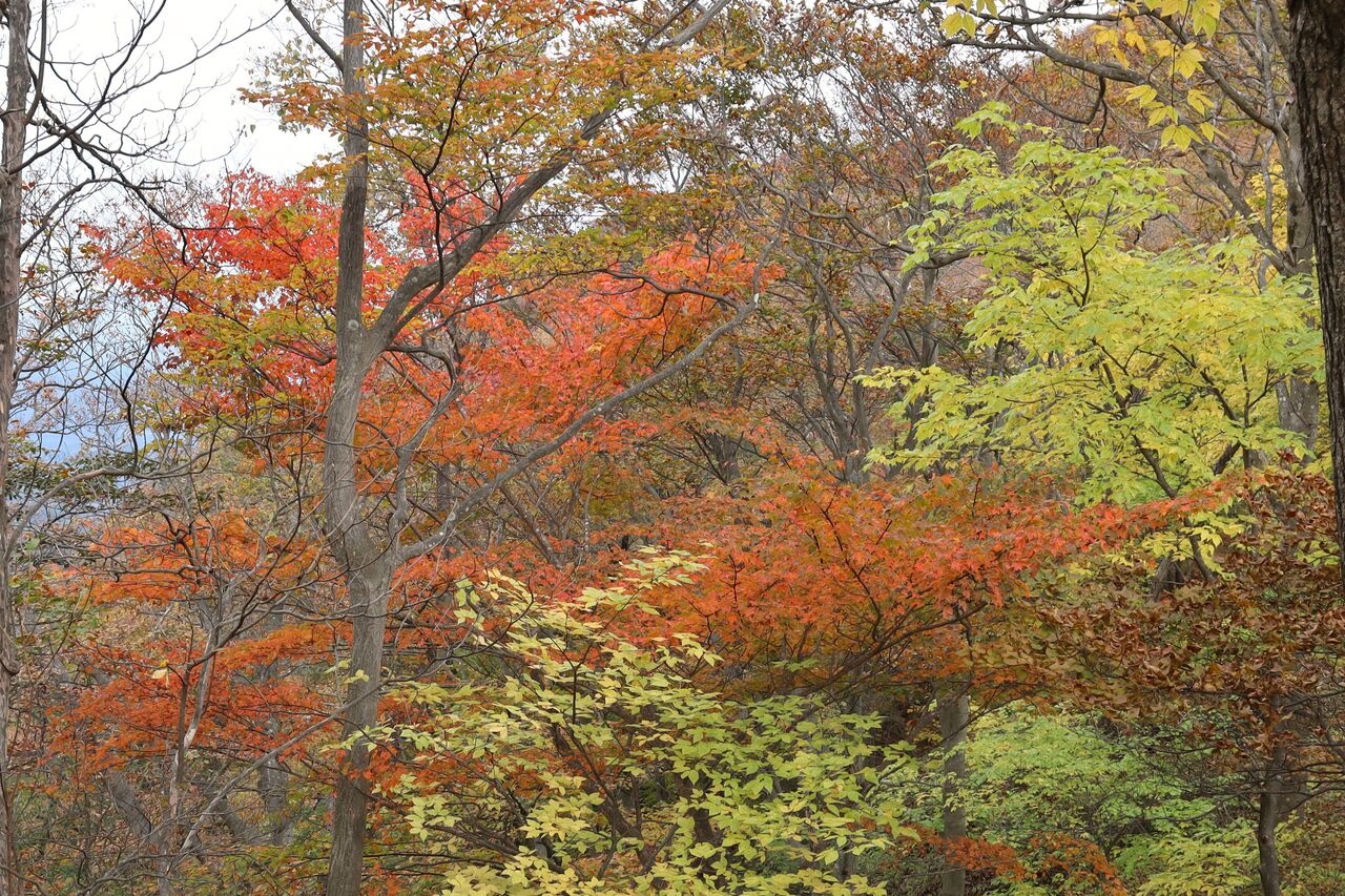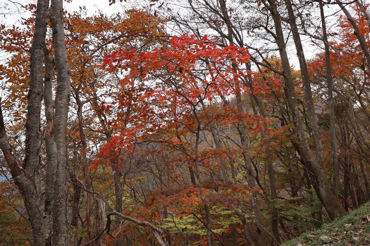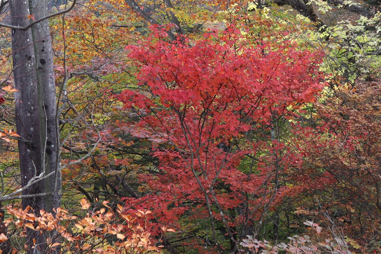 と言う訳で、曇り予報の11/1に怒りを抑えて紅葉狩りに出かけた。山のモミジ狩りに曇りはかなりテンションが下がるが、明日からまたしても荒れた天気になるらしいから今日行くしかなかっぺ。