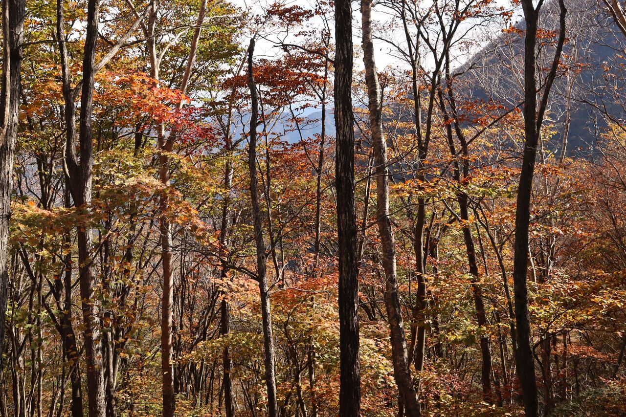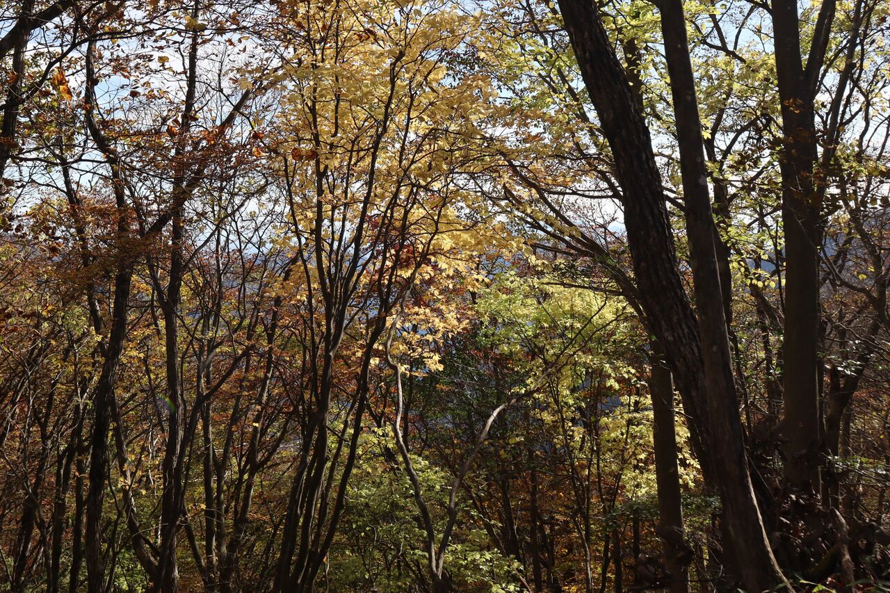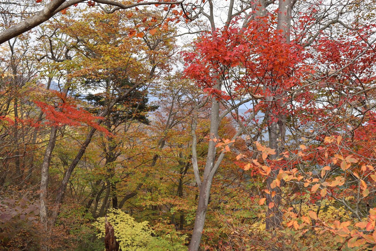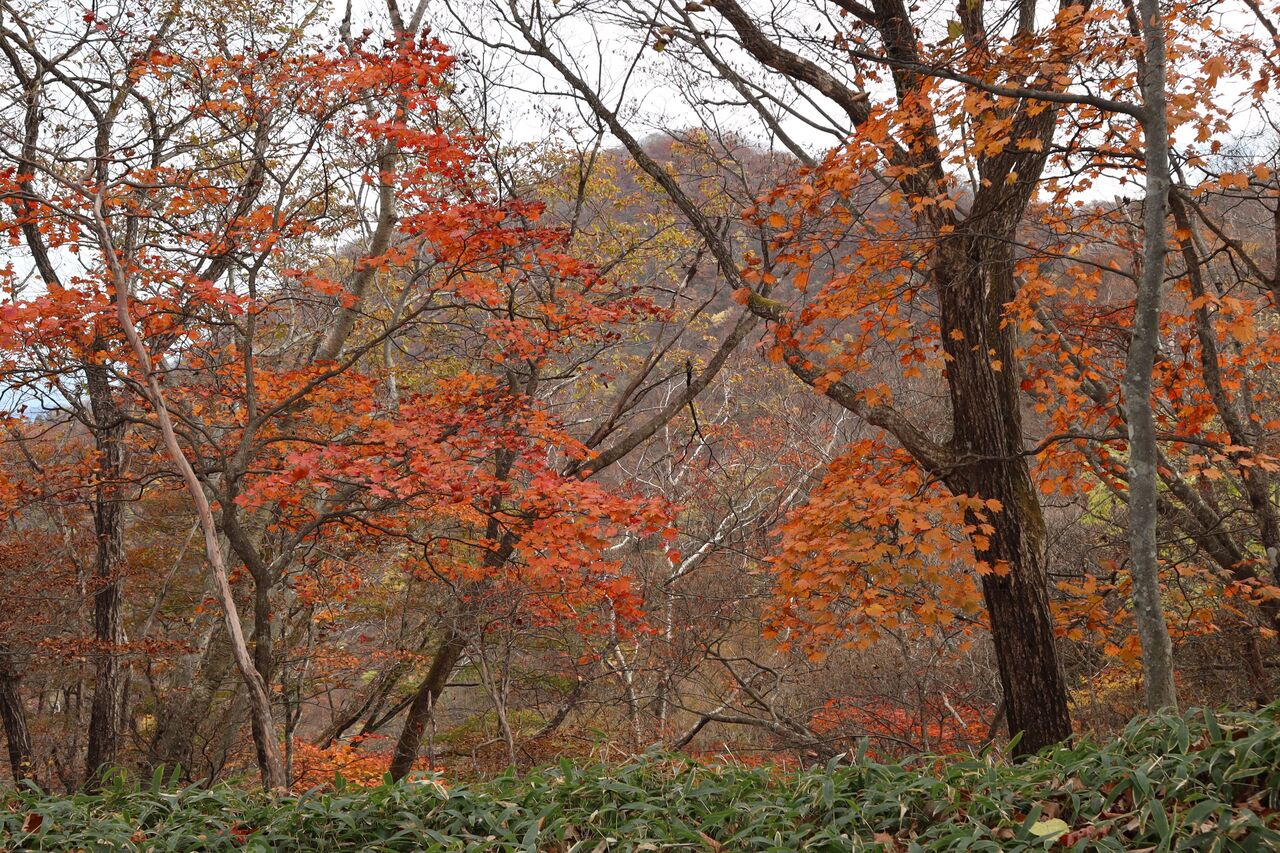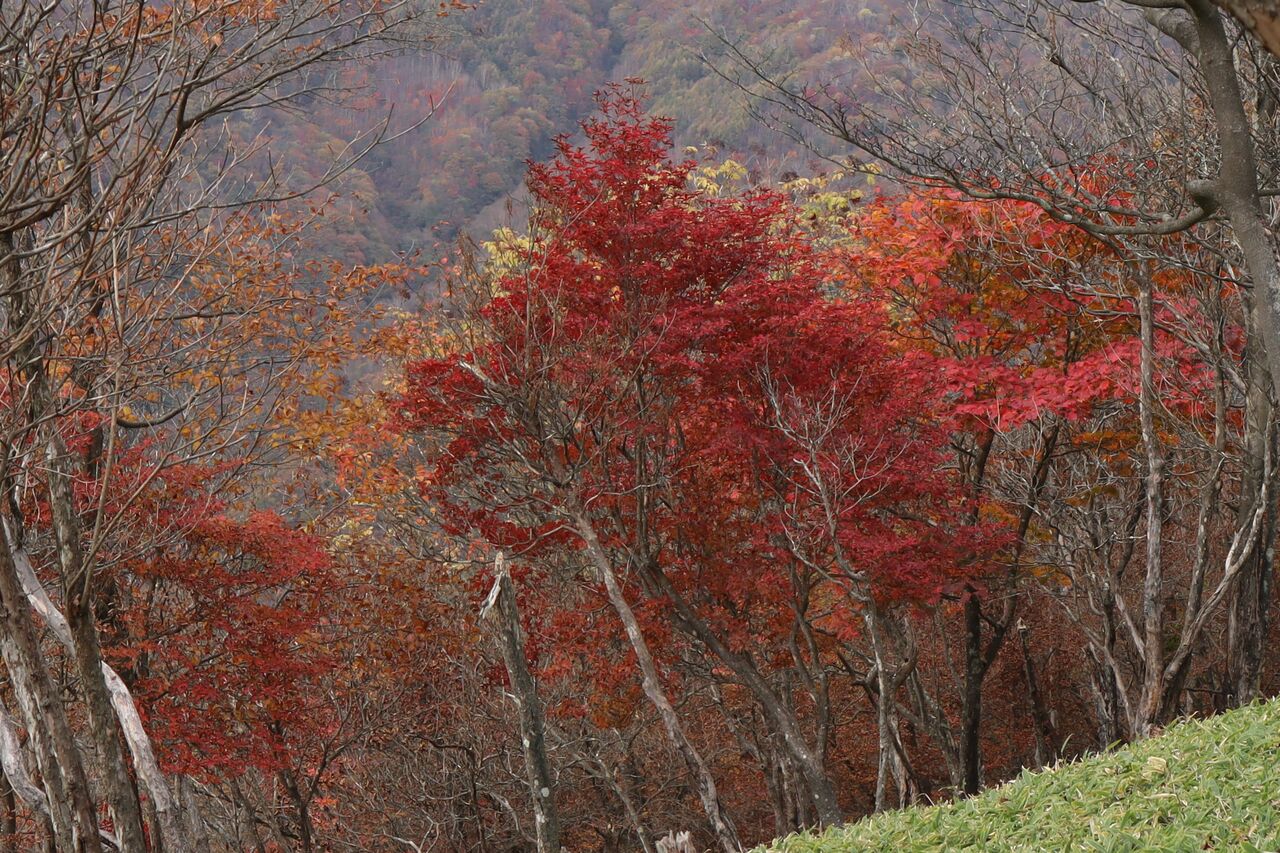 と言う訳で、曇り予報の11/1に怒りを抑えて紅葉狩りに出かけた。山のモミジ狩りに曇りはかなりテンションが下がるが、明日からまたしても荒れた天気になるらしいから今日行くしかなかっぺ。