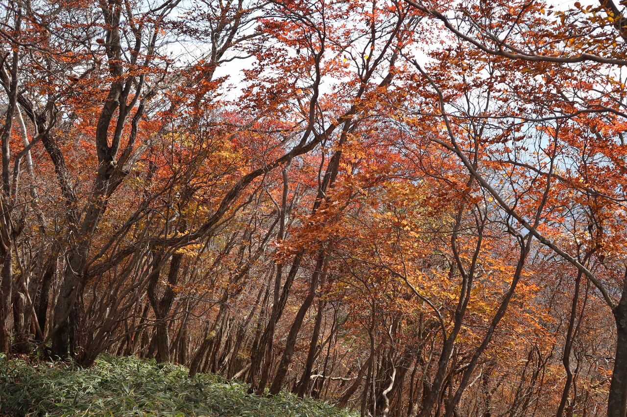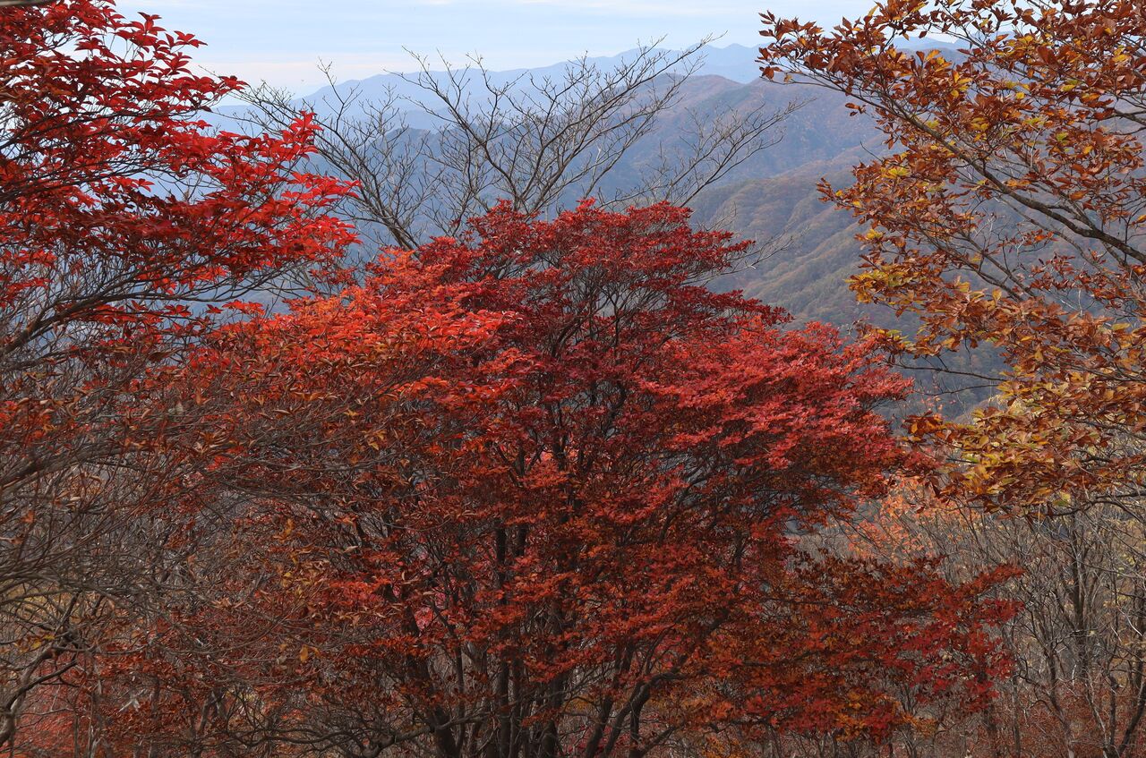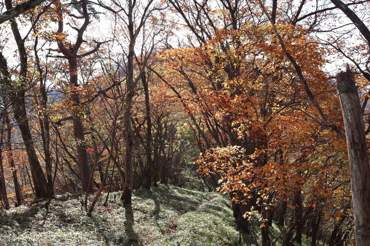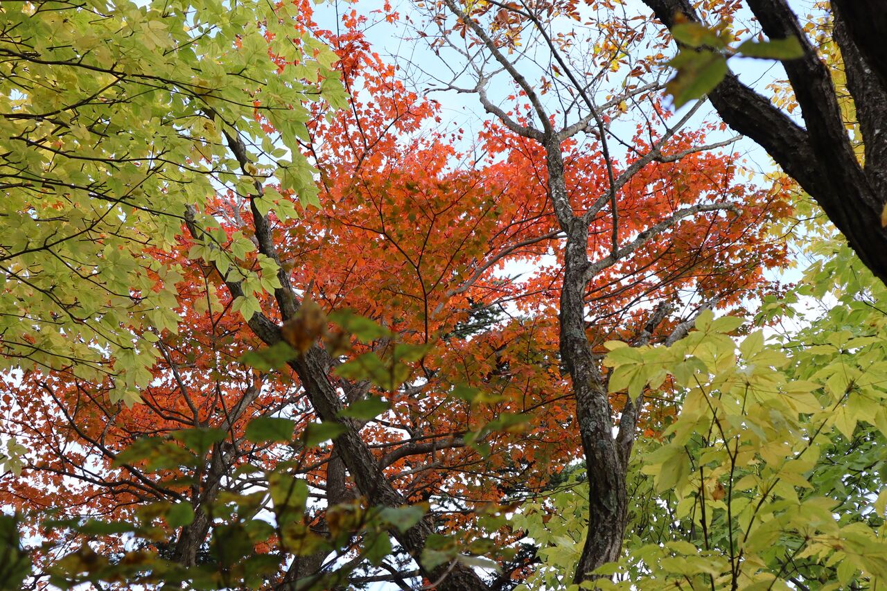 と言う訳で、曇り予報の11/1に怒りを抑えて紅葉狩りに出かけた。山のモミジ狩りに曇りはかなりテンションが下がるが、明日からまたしても荒れた天気になるらしいから今日行くしかなかっぺ。