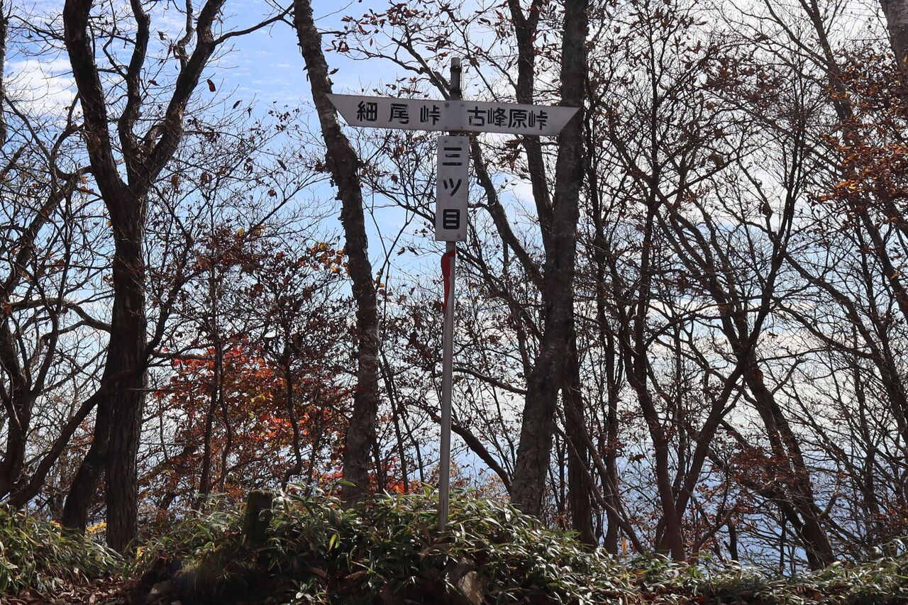 細尾峠は、意外にも晴れていた。助かった。とは云うものの、あまり紅葉していないね。車は1台停まっているだけだった。