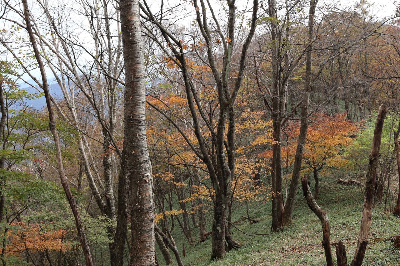 夕日岳を振り返る。完全に曇ってしまった。