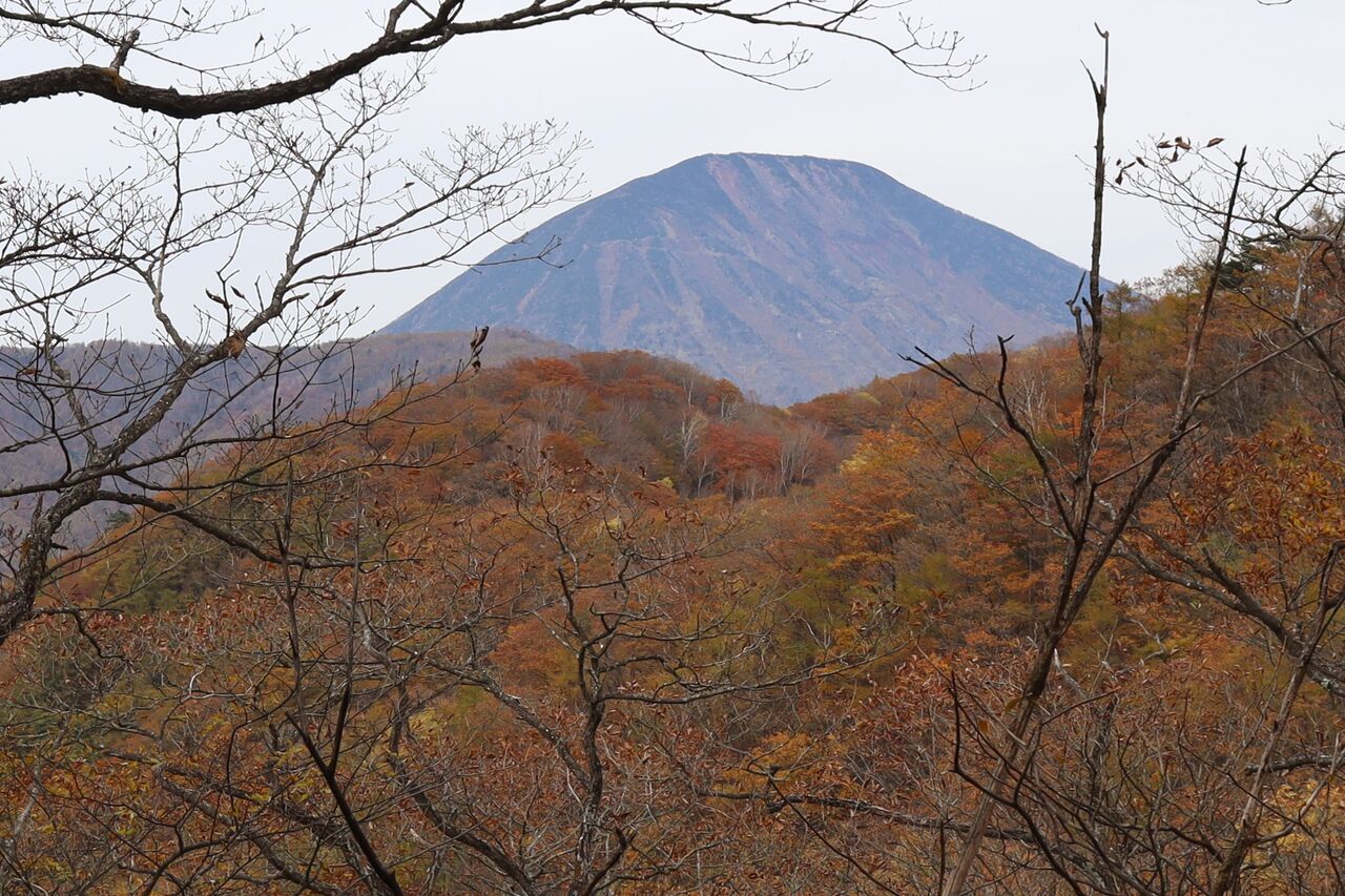 樹間に男体山。