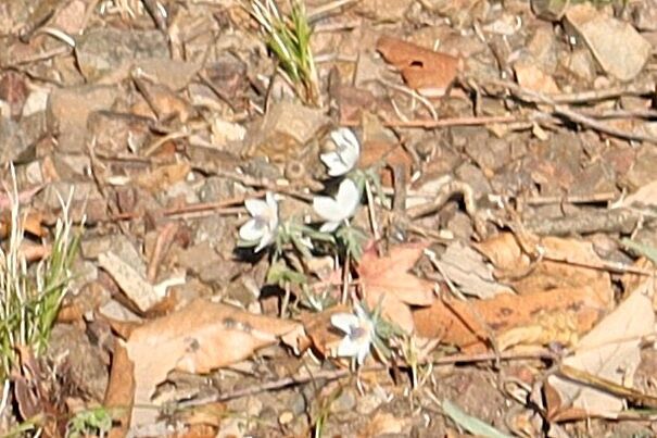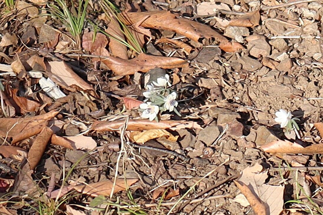 遊歩道に咲いていたセツブンソウは何時もより花が小さくてしおれていて