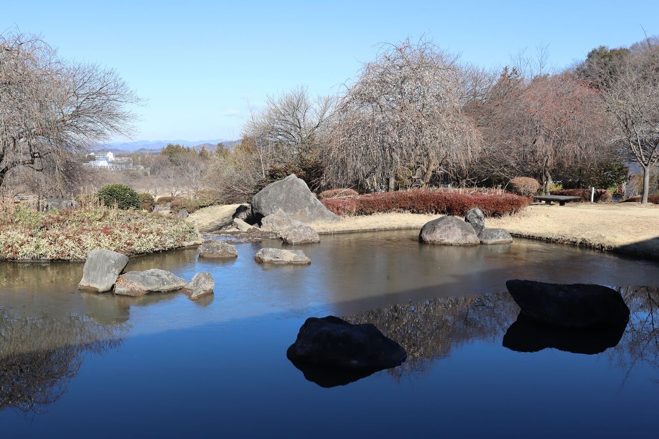 ついでに万葉庭園に移動すると、かろうじて白梅が一樹だけで、紅梅はツボミでした。情報にあった、南口のロウバイはやめました。
