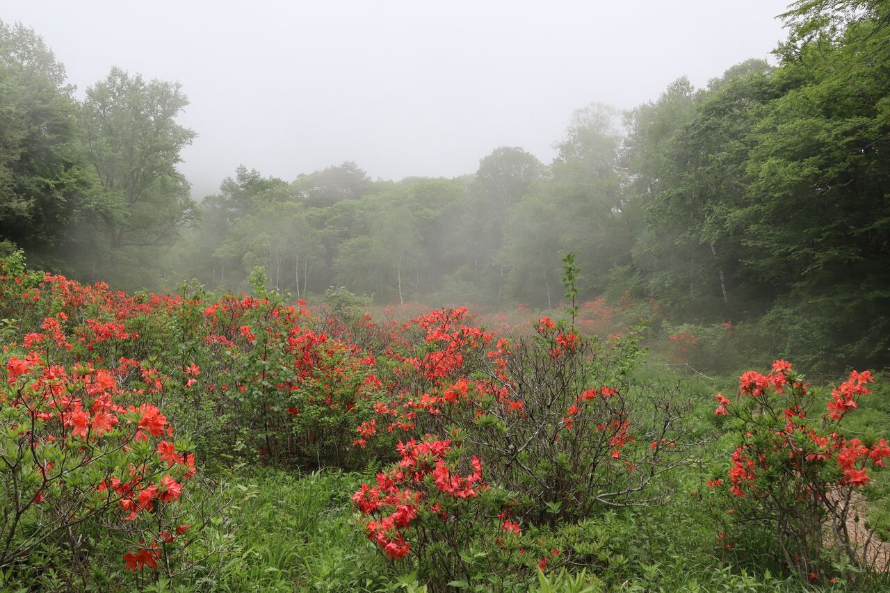 乙女高原にて。レンゲツツジが密生。ツボミ多し、でした。