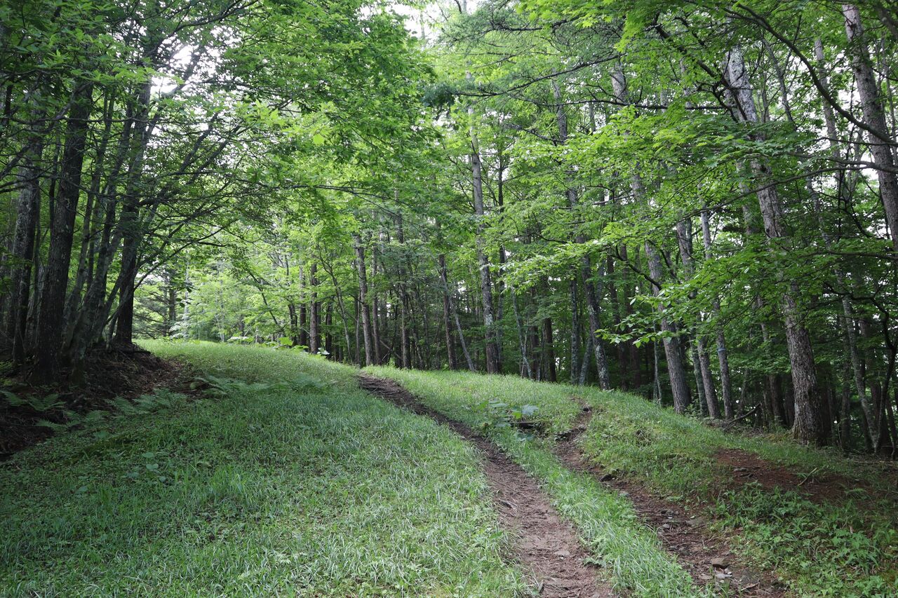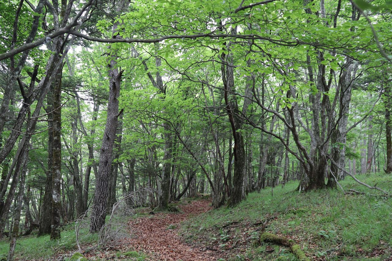 ゆるいが小さな登り下りを繰り返す。曇天ながら、右手の樹間に富士山らしきものがチラチラ見える。