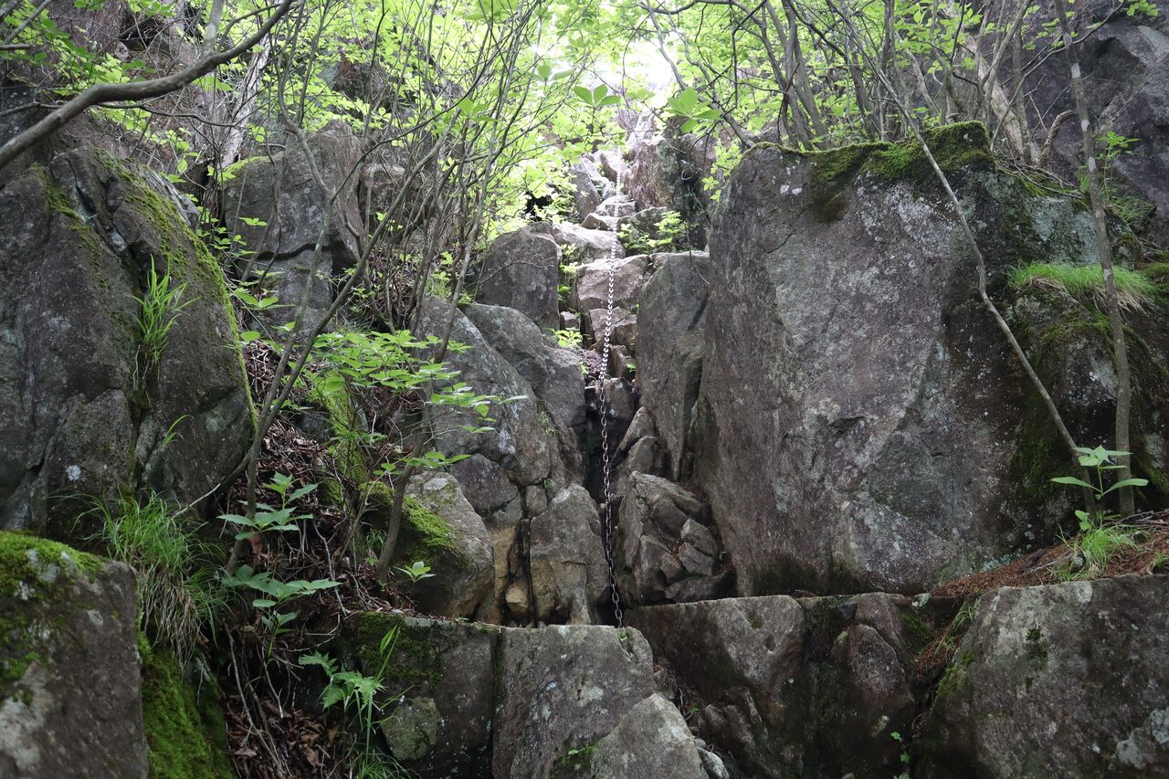 幕岩とあった。大沢山→の方角とは異なるが鎖が垂れていたので、鎖に取り付いた。