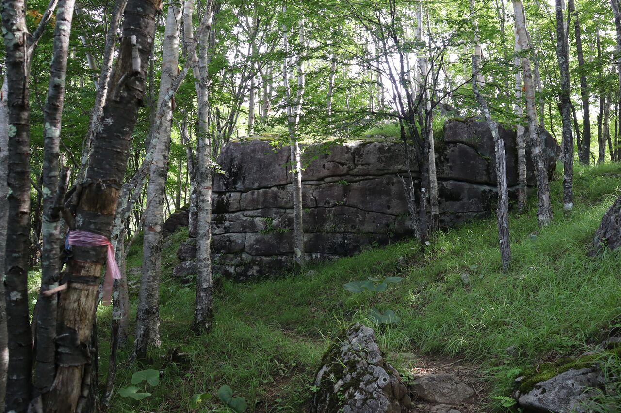 城の石垣のような岩が現れて、