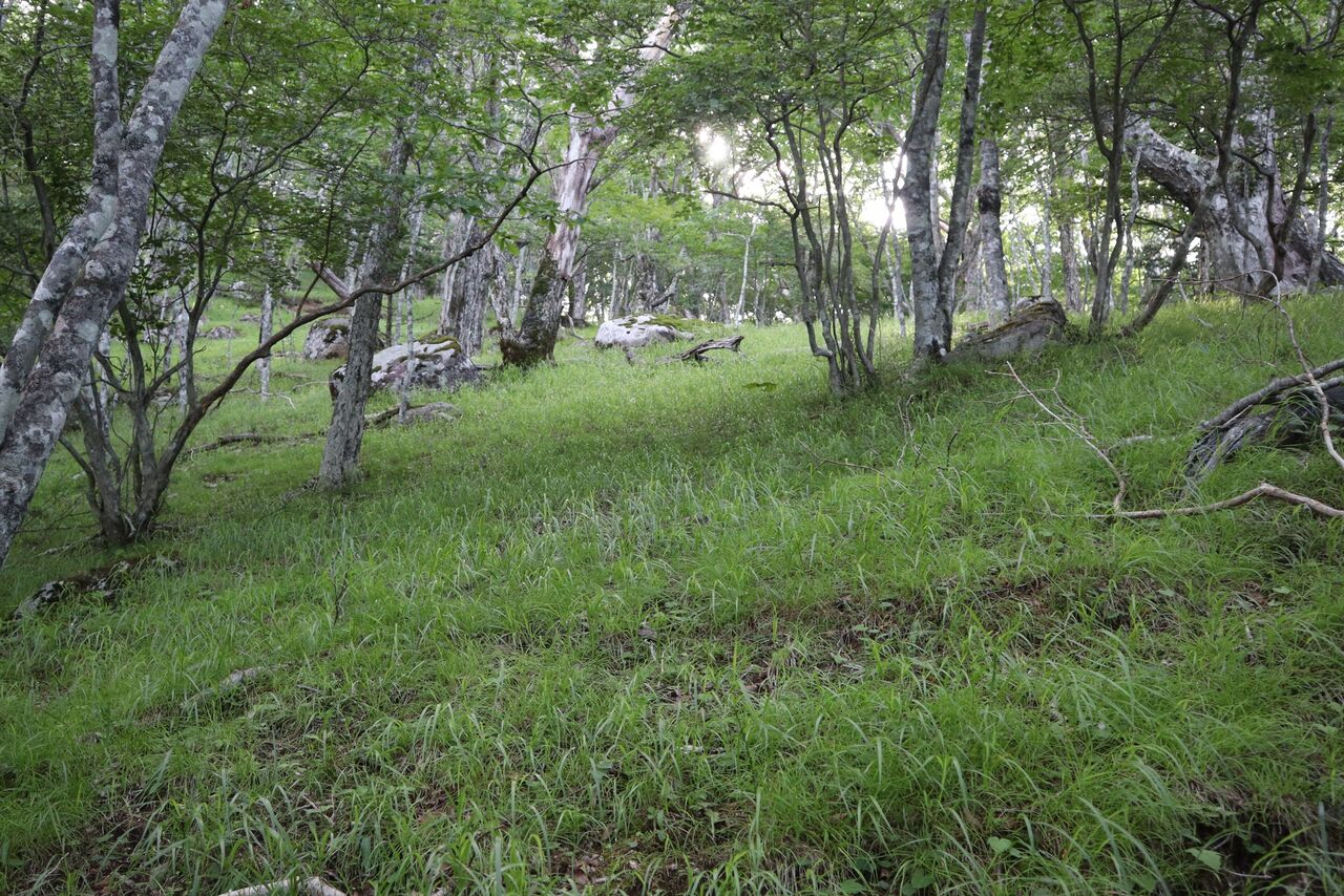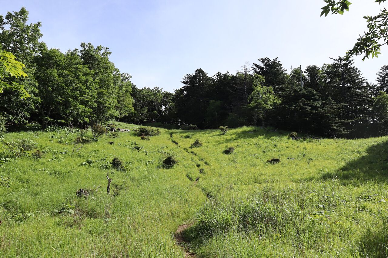 草原を登り切った所が雁ヶ腹摺山山頂だった。