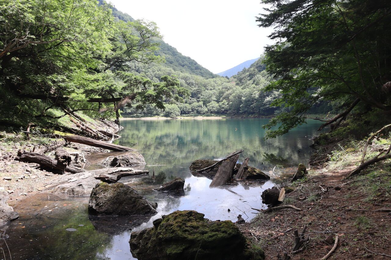 切込湖西端にて。刈込湖と微妙に繋がっている。