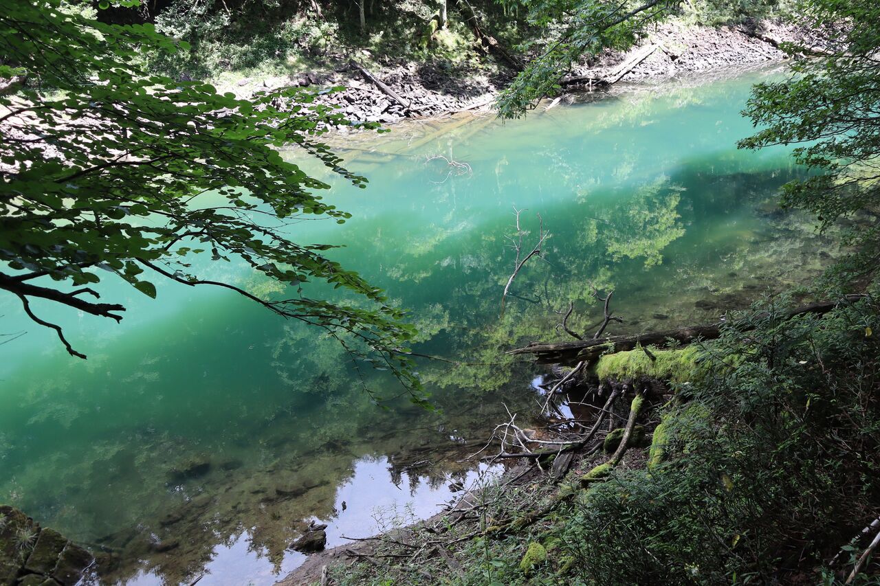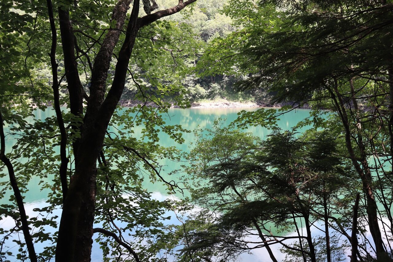 場所によっては、非常に鮮やかな色どりの刈込湖。