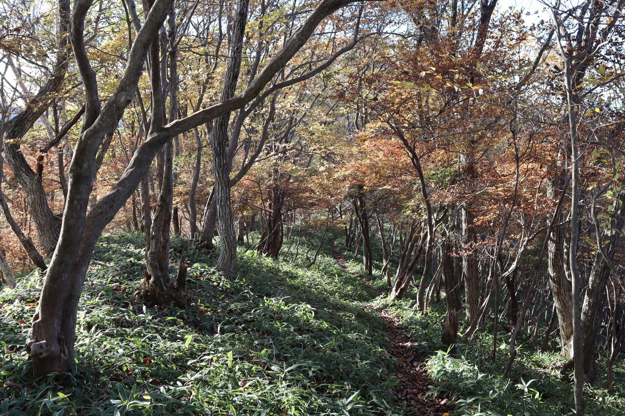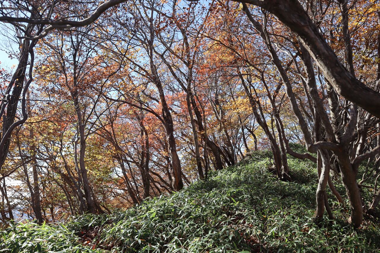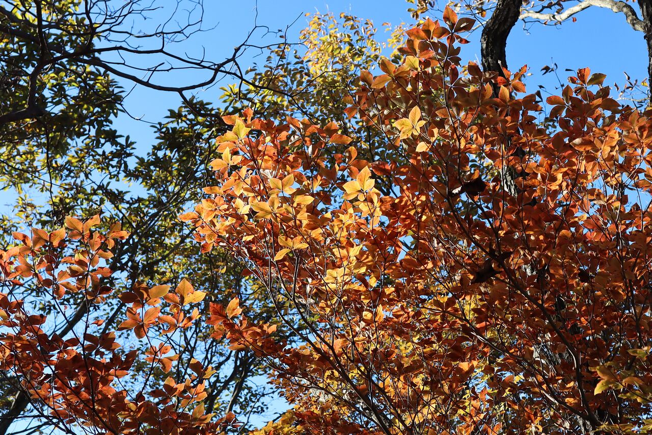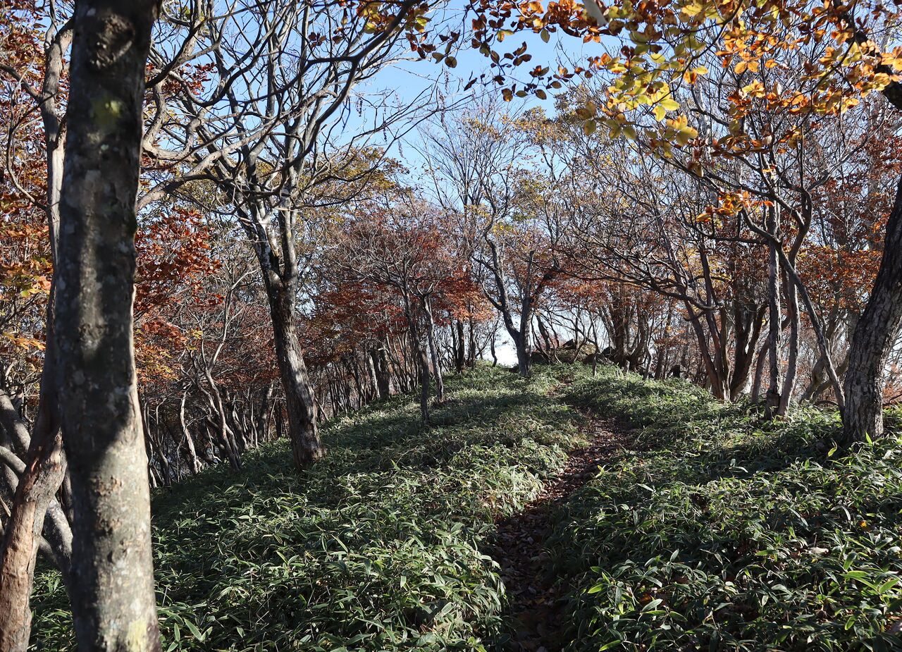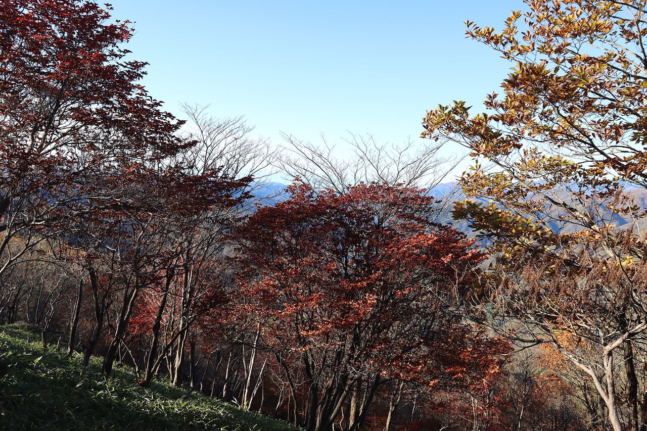 三つ目を目指して尾根を南下。ツツジのクスミ紅葉。