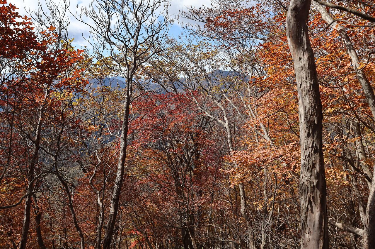 足尾の1400~1500mの、昨日時点の紅葉状況は何となくわかりました。下がってはきているようですが、赤倉山方面の写真をアップで拝見すると、こちらもクスミのようですね。細尾峠からの薬師岳の山肌の紅葉は、濃いながらもきれいに撮れて、すぐにでも行きたくなりますけど…。