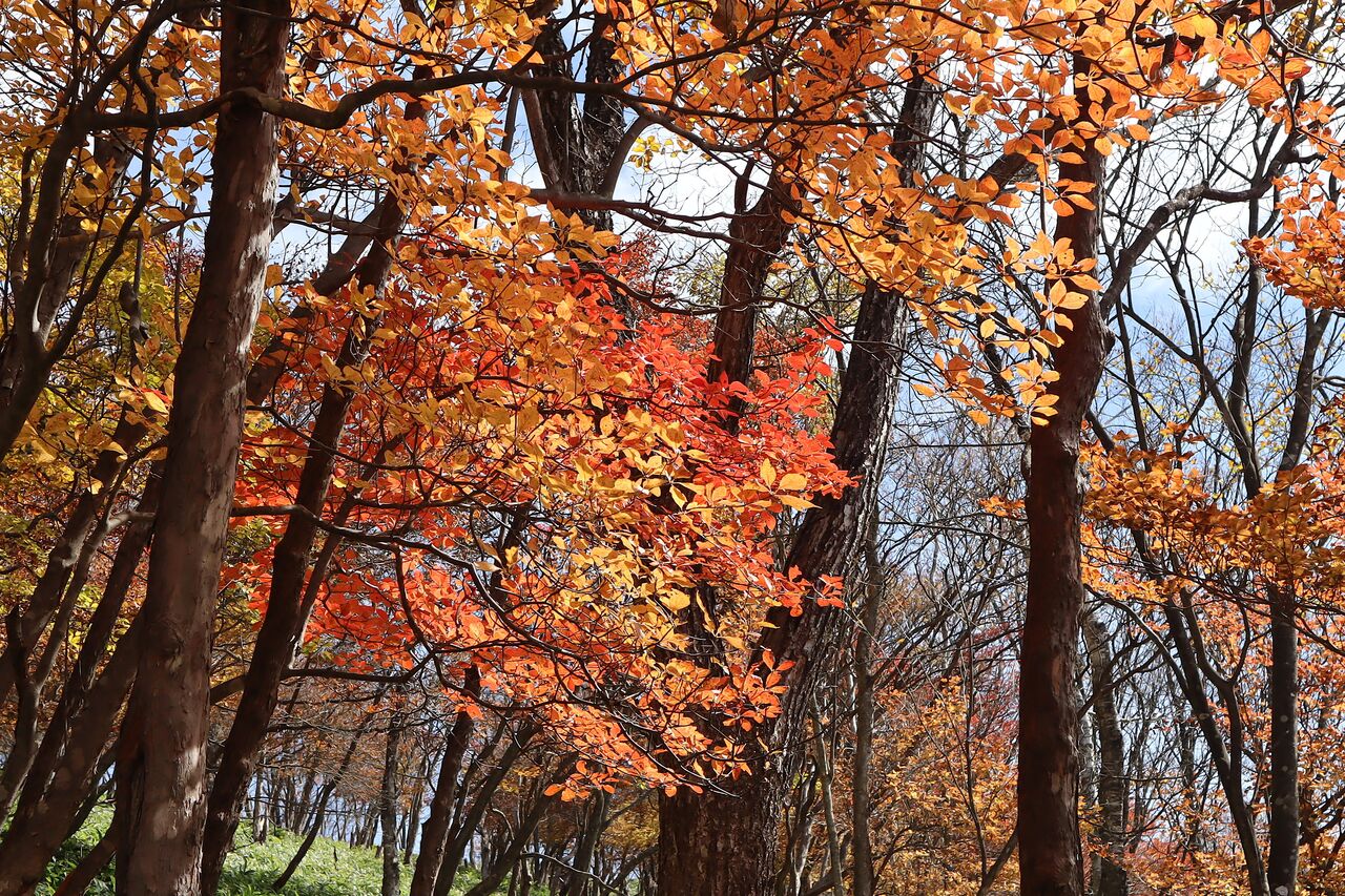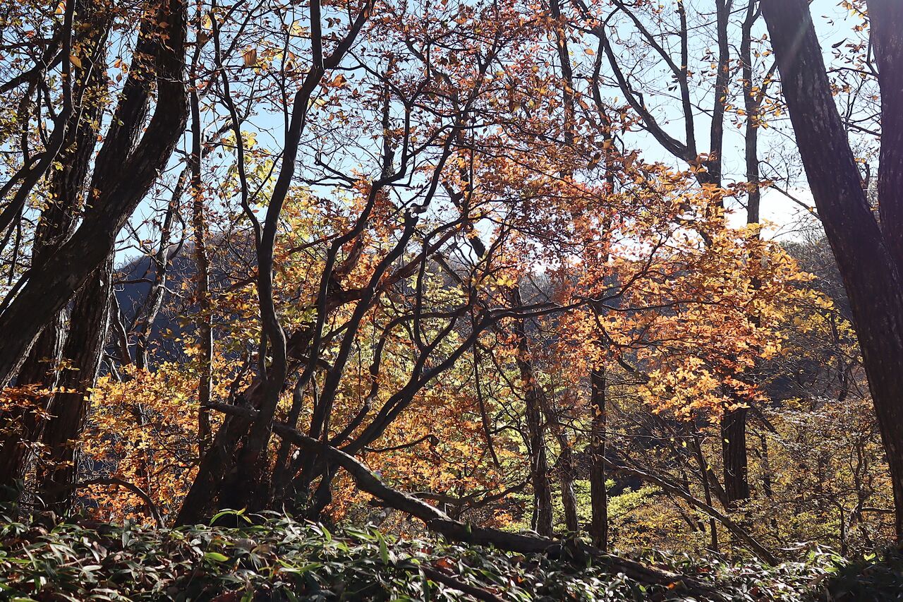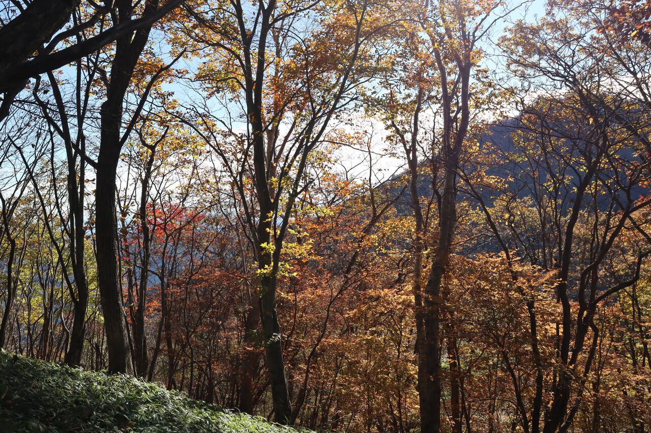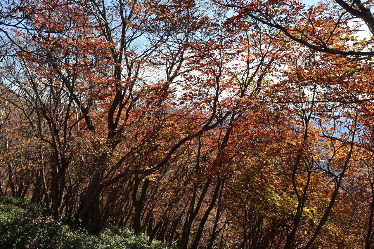写真を拝見する限り、色づきに精通しているわけでもなく、むしろ、ぶなじろうさんの「クスミ紅葉」やら焼けた具合は、現時点ではどこでもそんな感じがします。鮮明な黄色も赤も目にしていません。それが早いのか、遅いのかも見当はつかず、ネット記事では「今年の紅葉は当たり年」とよく記されてはいますが、果たしてそうなのかなと疑問に思ったりしています。ただ、往復での色彩の違い、これはやはり、光の当たり具合なんでしょうかね。