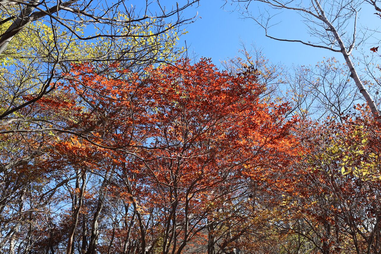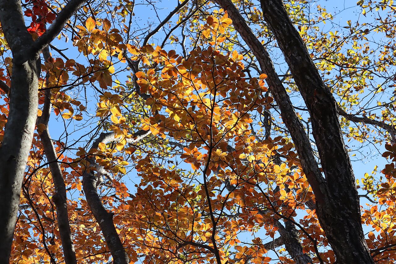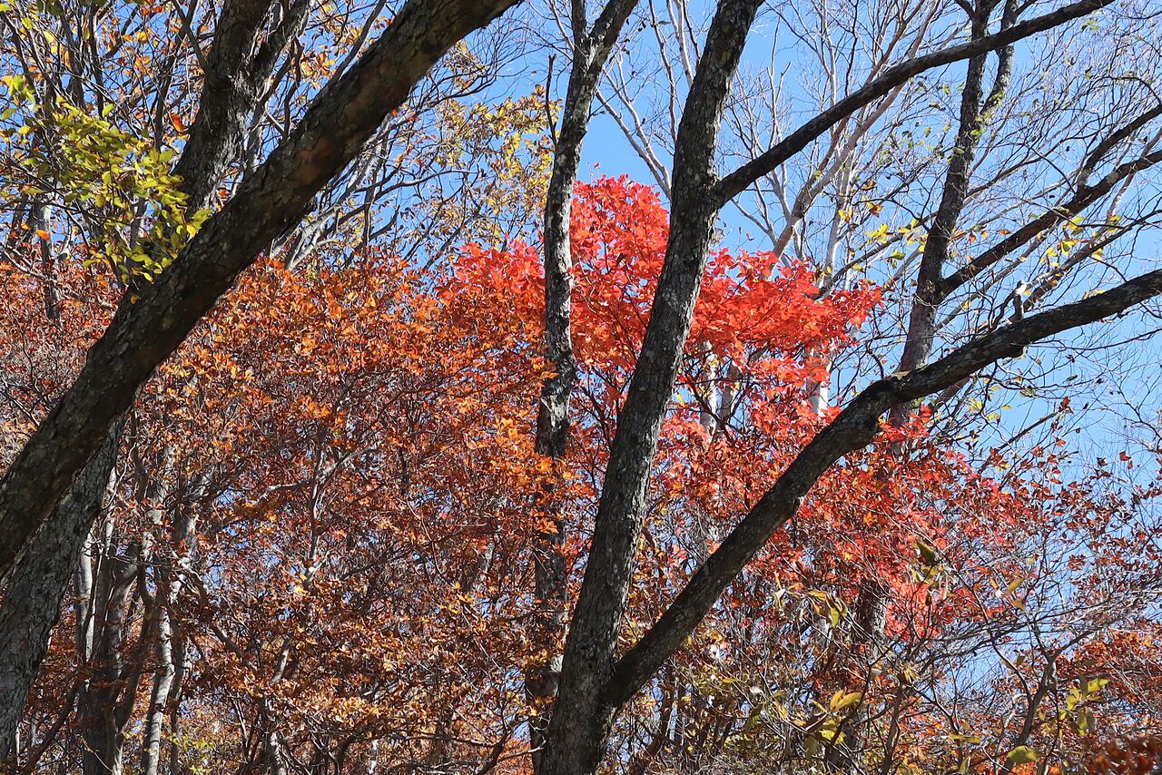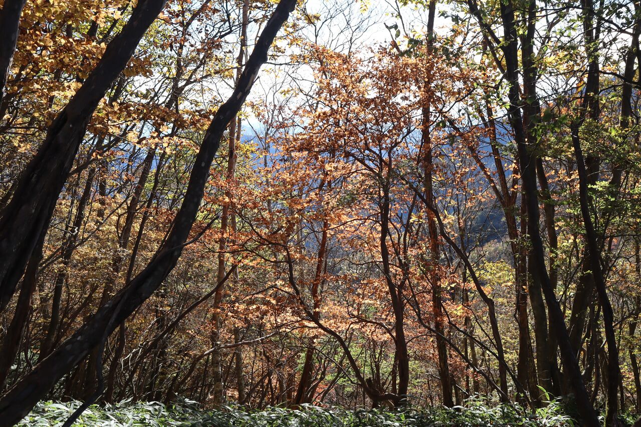 写真を拝見する限り、色づきに精通しているわけでもなく、むしろ、ぶなじろうさんの「クスミ紅葉」やら焼けた具合は、現時点ではどこでもそんな感じがします。鮮明な黄色も赤も目にしていません。それが早いのか、遅いのかも見当はつかず、ネット記事では「今年の紅葉は当たり年」とよく記されてはいますが、果たしてそうなのかなと疑問に思ったりしています。ただ、往復での色彩の違い、これはやはり、光の当たり具合なんでしょうかね。