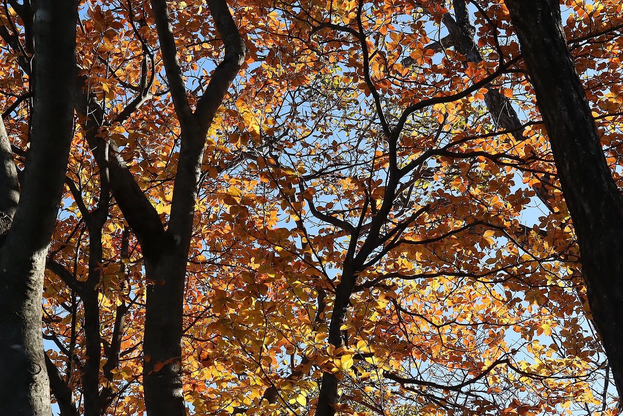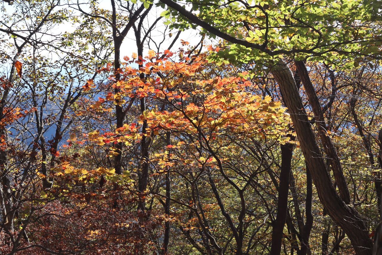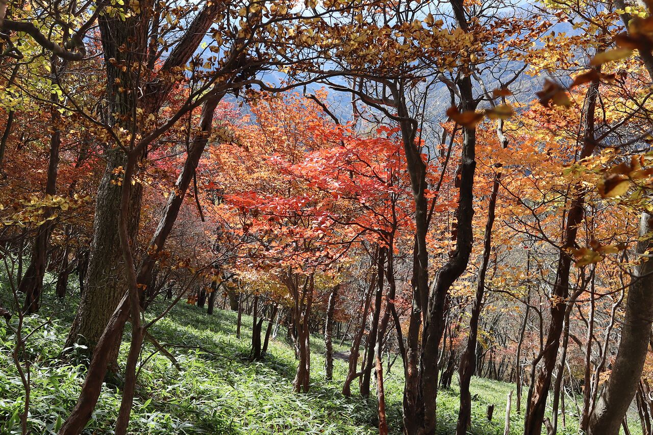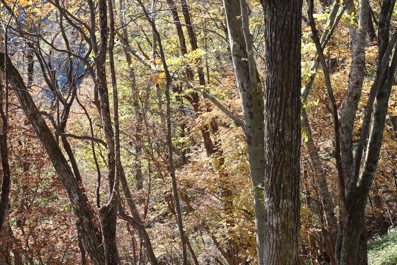 写真を拝見する限り、色づきに精通しているわけでもなく、むしろ、ぶなじろうさんの「クスミ紅葉」やら焼けた具合は、現時点ではどこでもそんな感じがします。鮮明な黄色も赤も目にしていません。それが早いのか、遅いのかも見当はつかず、ネット記事では「今年の紅葉は当たり年」とよく記されてはいますが、果たしてそうなのかなと疑問に思ったりしています。ただ、往復での色彩の違い、これはやはり、光の当たり具合なんでしょうかね。