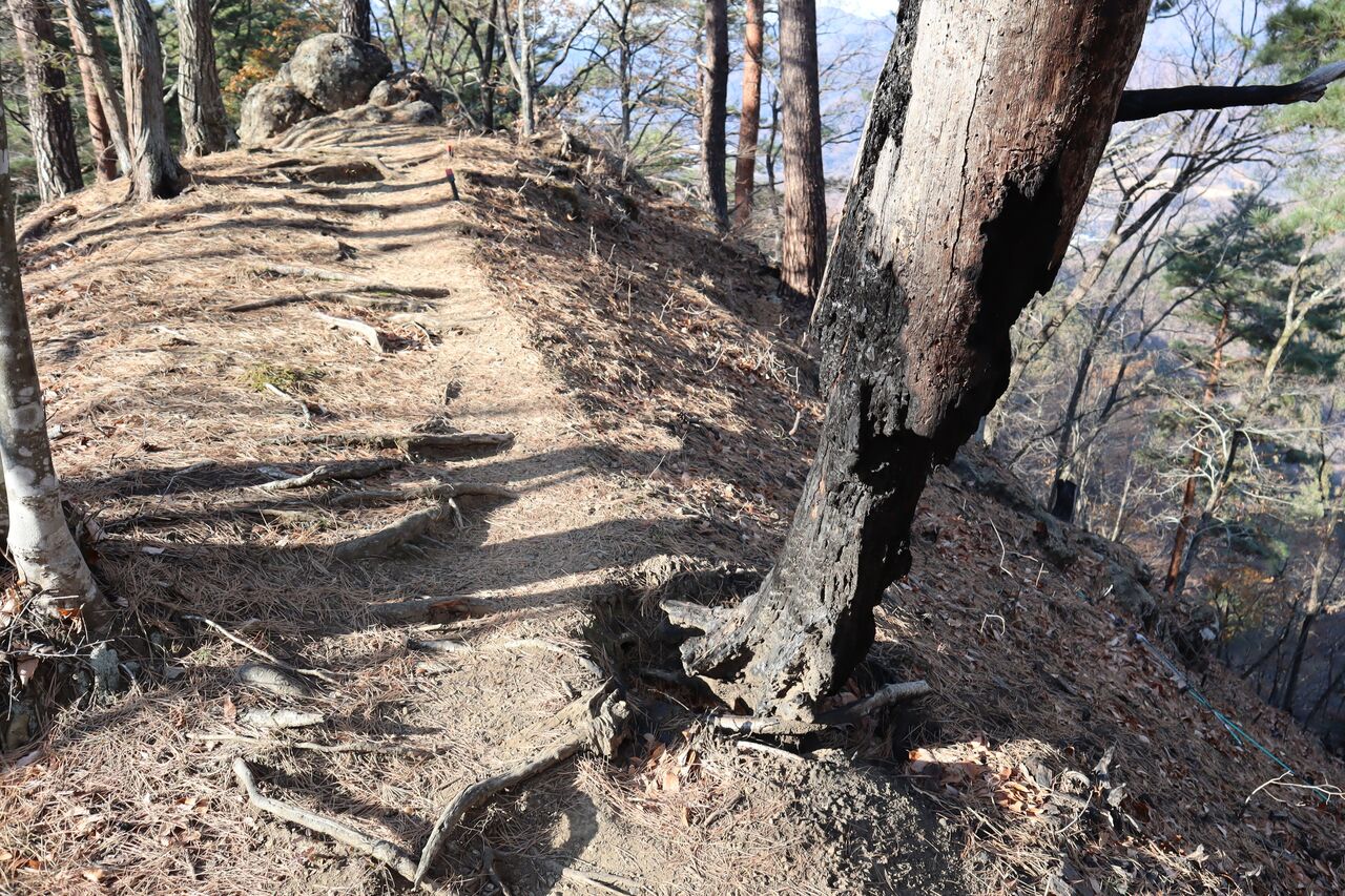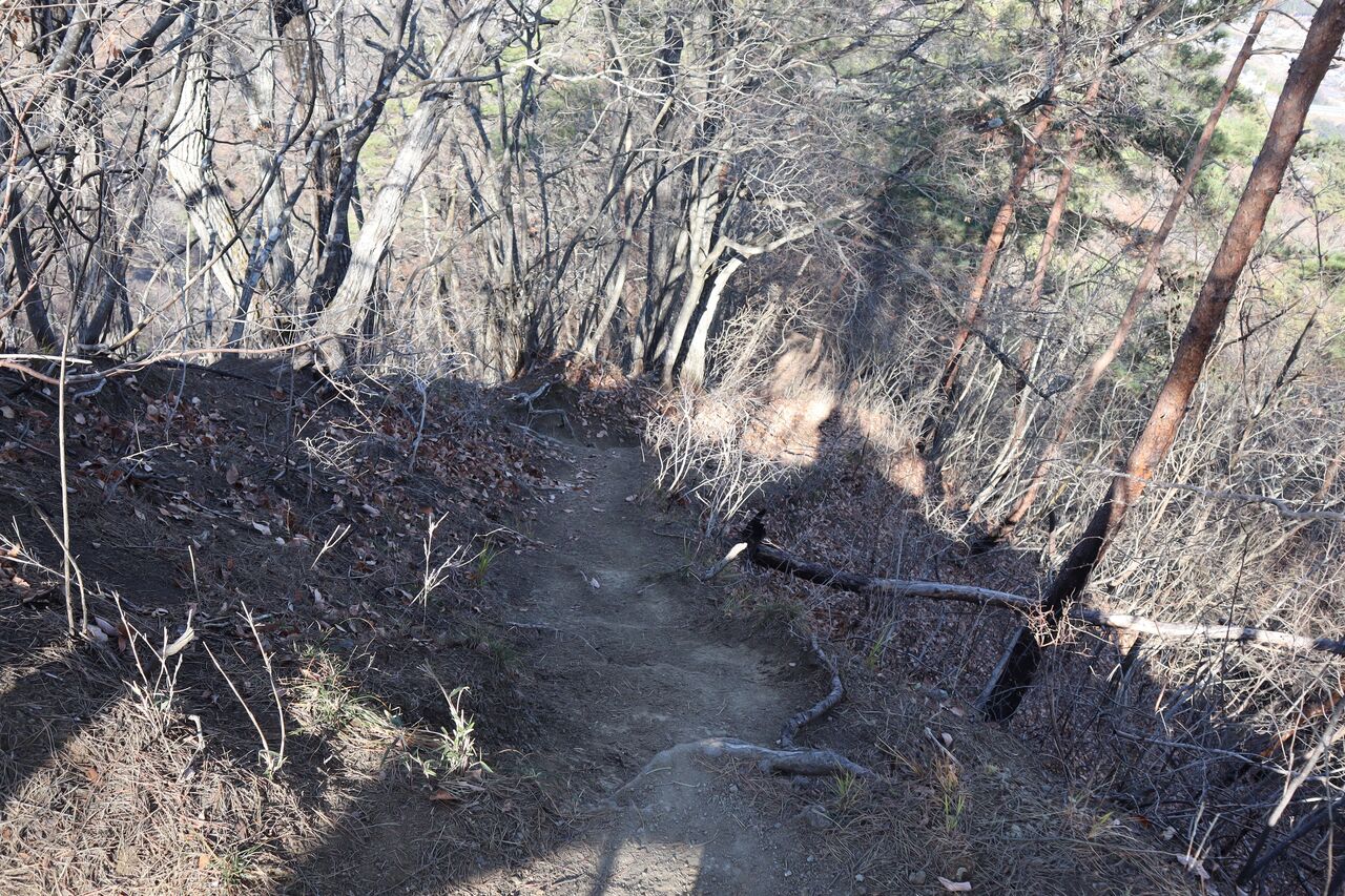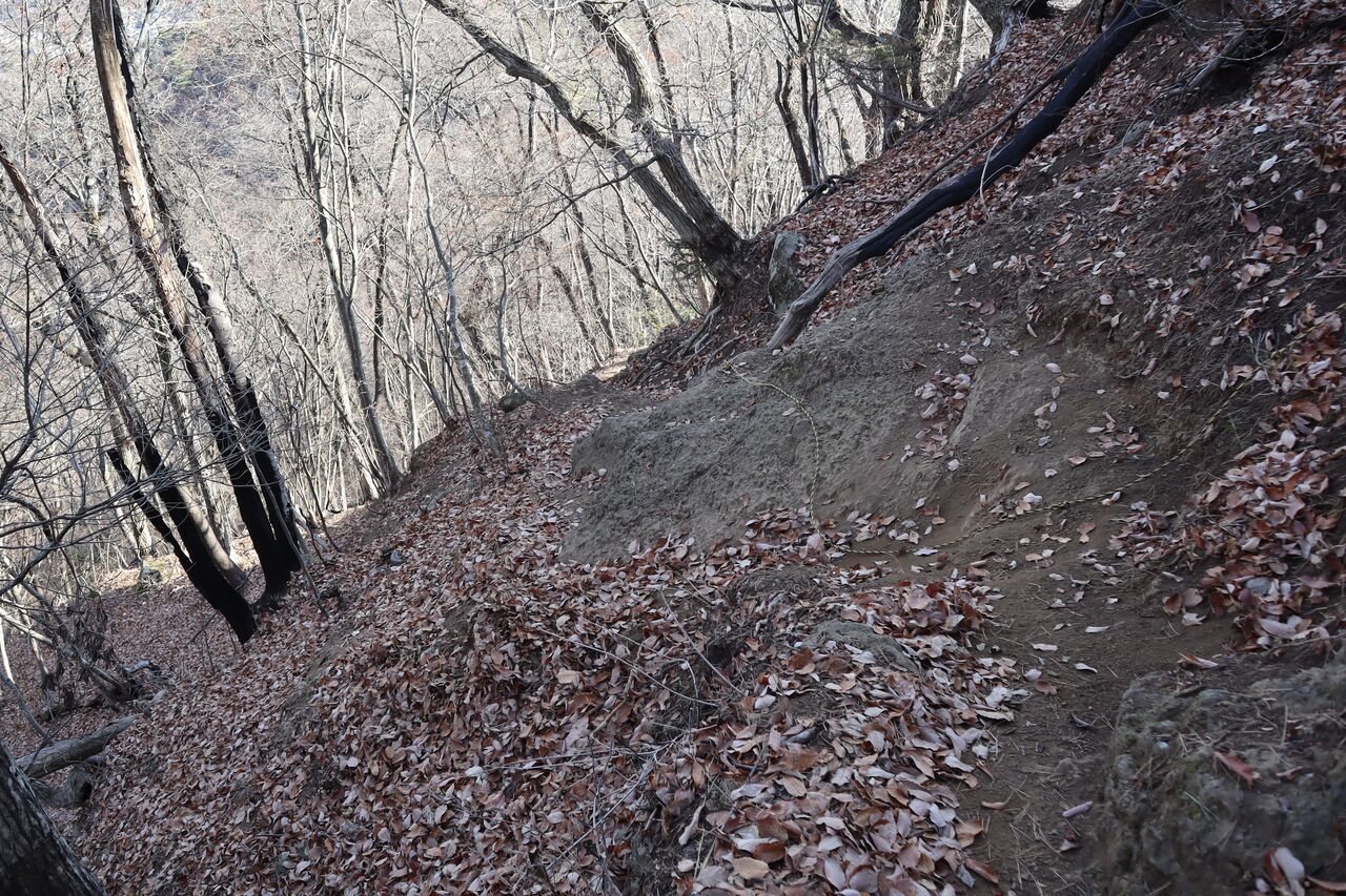 かなりの急斜面。乾ききった土がズリズリと。怖いです。