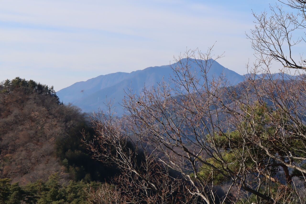 御前山の展望は良好だ。右に三つ峠。中央やや左の暗い山が九鬼山かな。