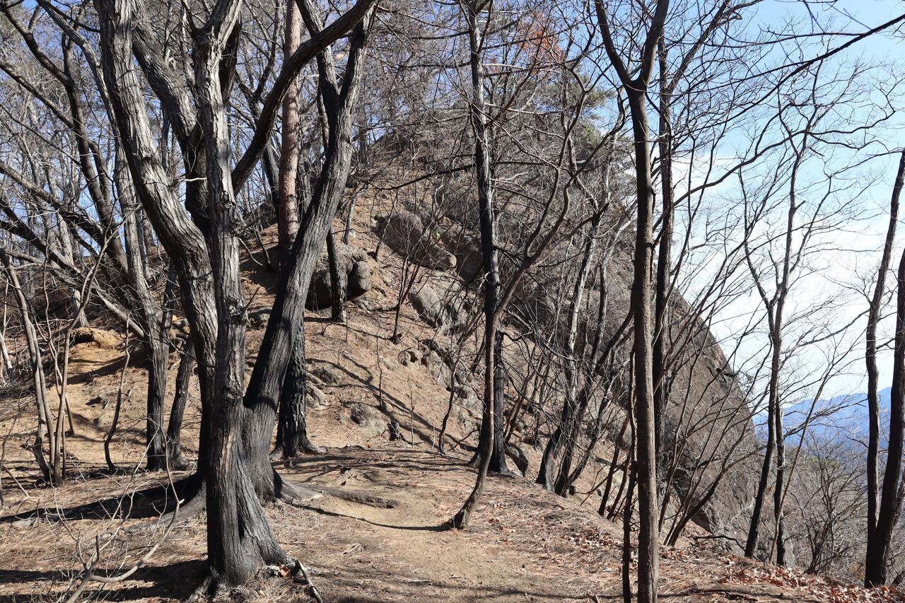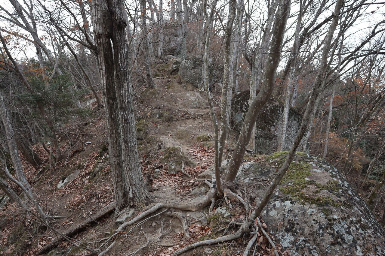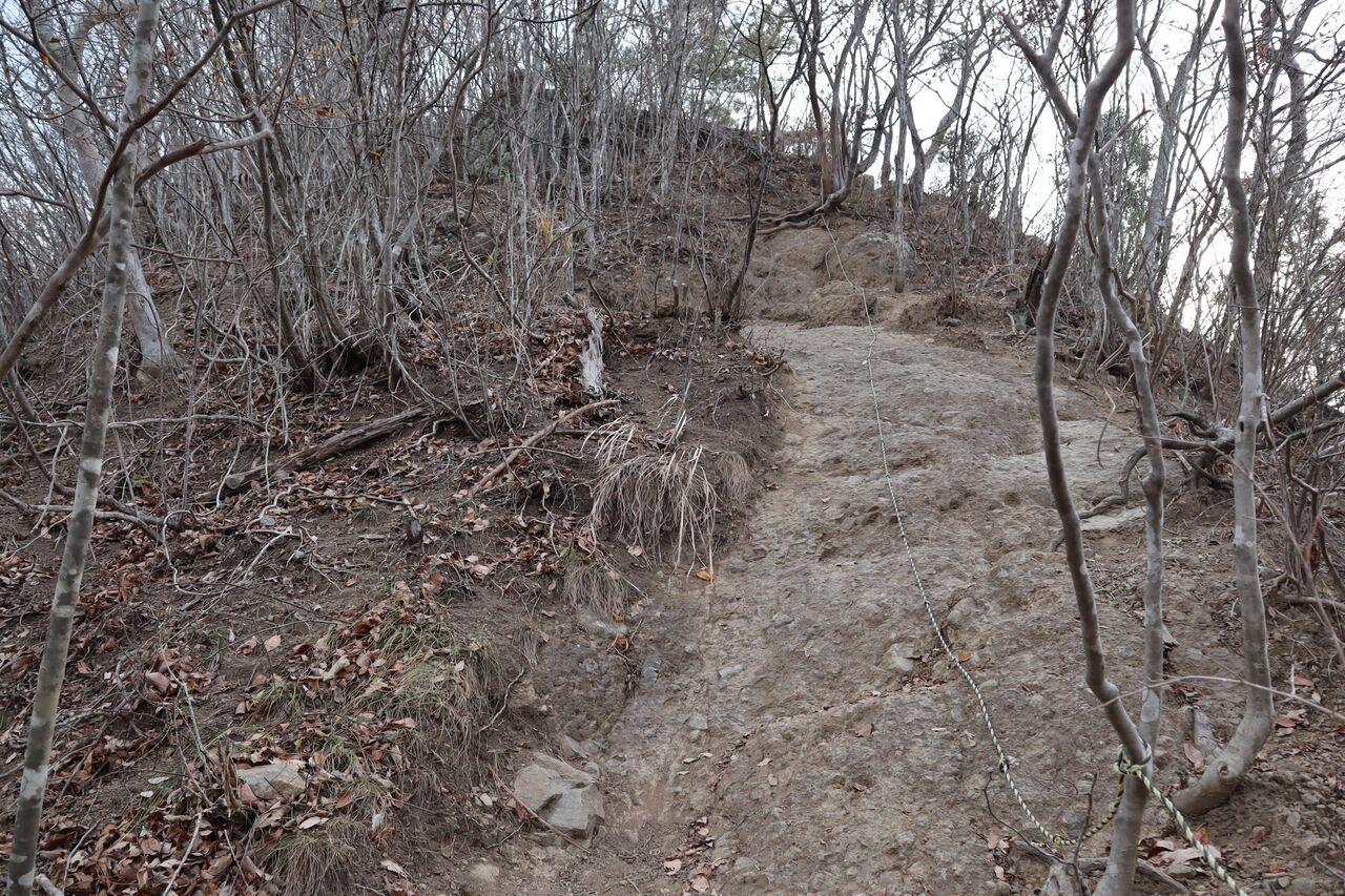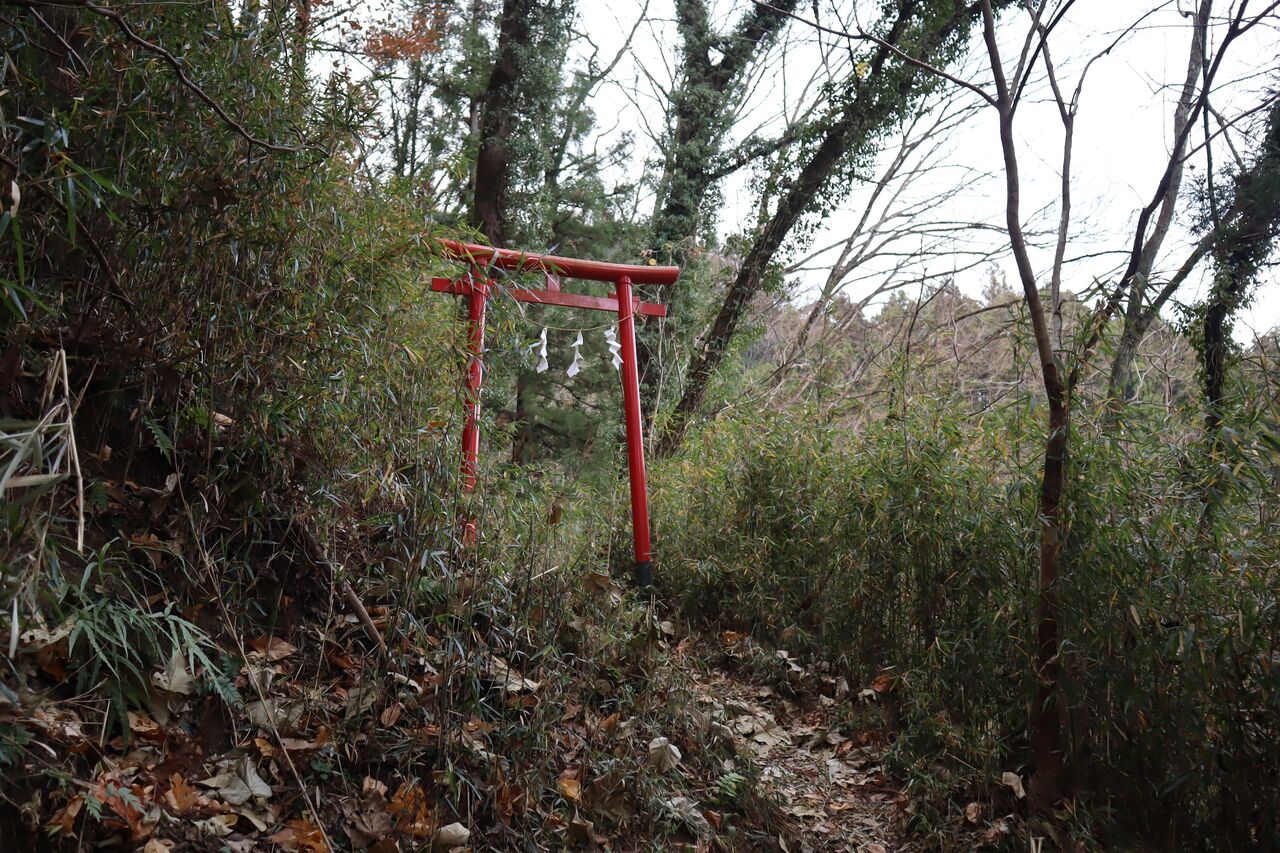 九十九折れの急斜面を行く。鳥居をくぐるのかなと思ったが直前で左折。