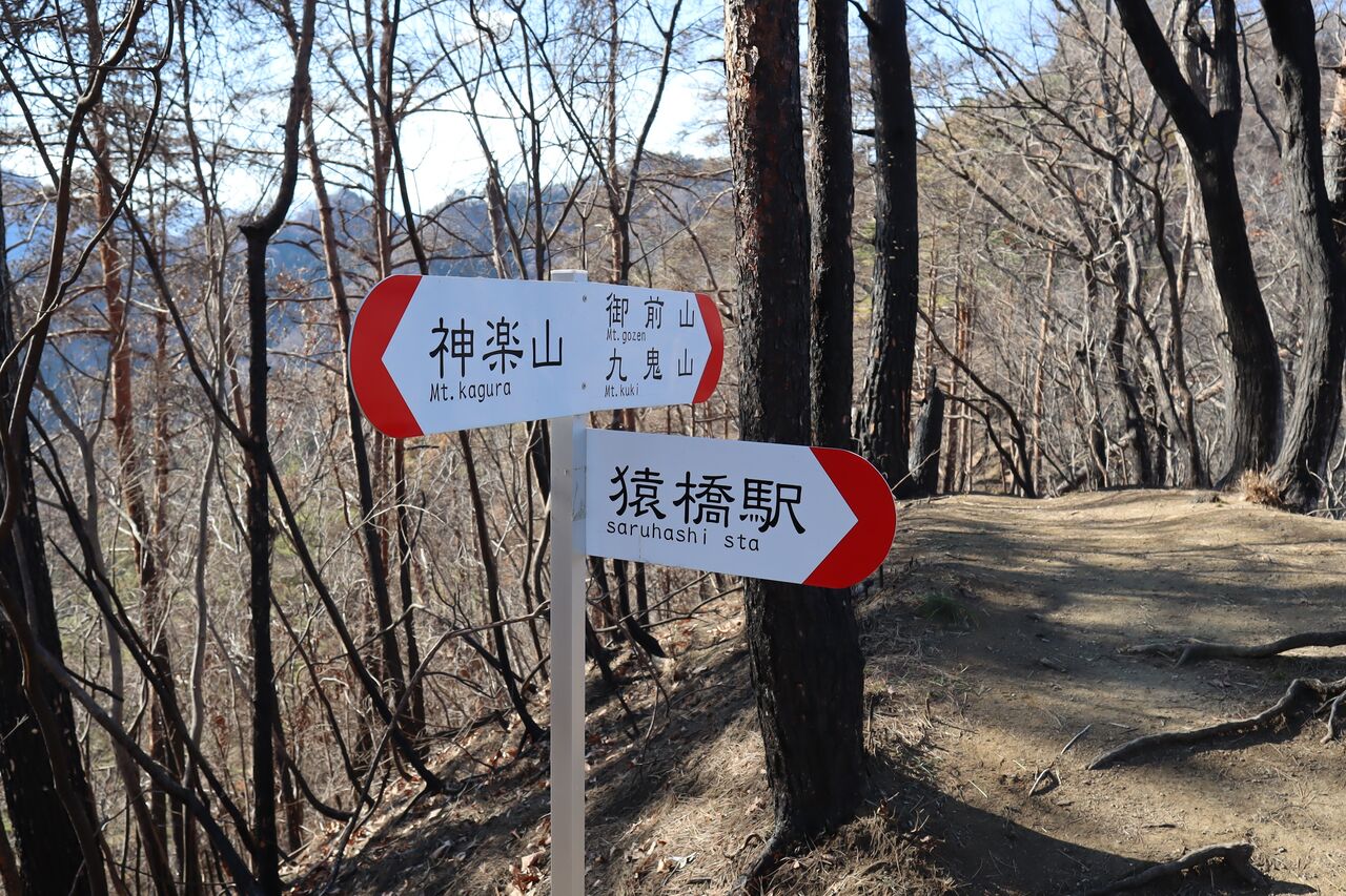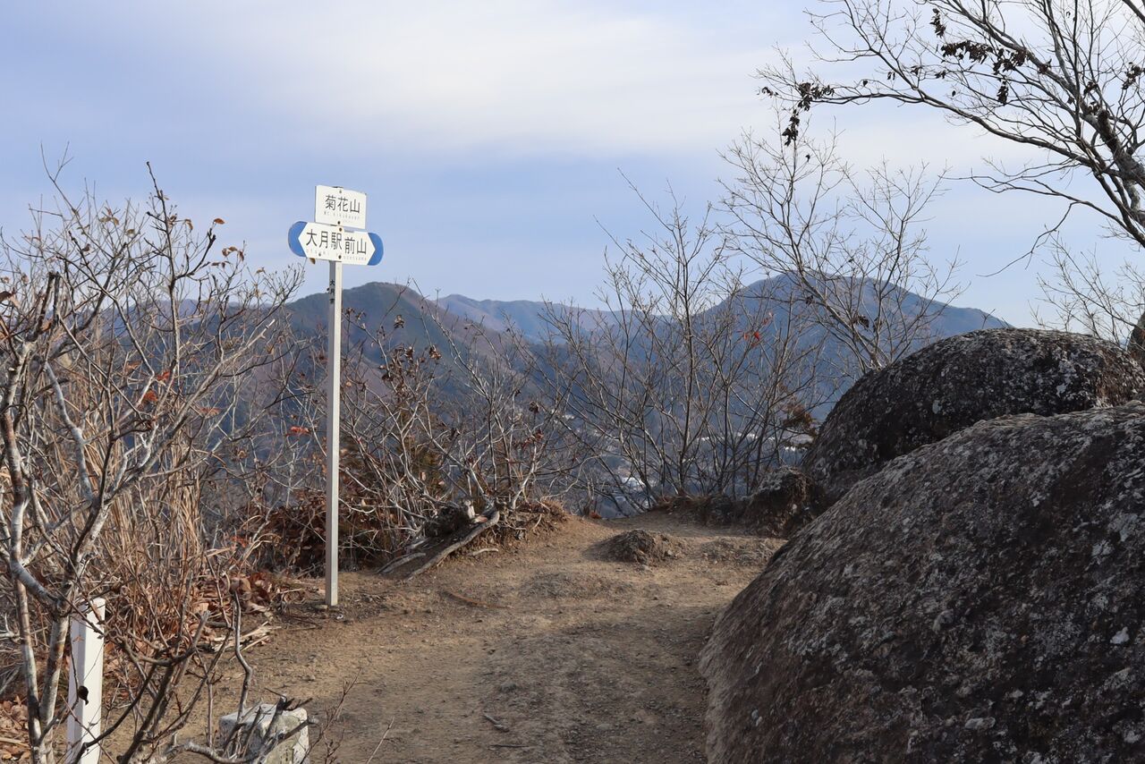 コース:JR中央線大月駅(7:50)~菊花山登山口(8:00)~(8:40)菊花山(8:55)~沢井沢の頭分岐(9:45)~(10:05)御前山(10:30)~神楽山(10:55)~JR中央線猿橋駅(11:55)
