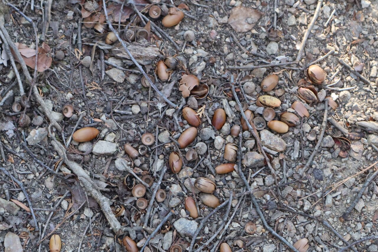 この山に限って、ドングリ豊作。