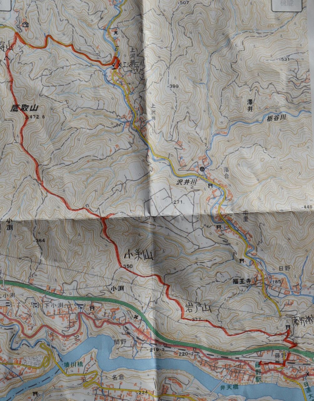 右足の裏が痛い。整形外科では、これも腰からきている痛みだと言われた。楽そうな山を捜した。昭文社の「高尾・陣馬」から捻りだしたのが、旧藤野町の鷹取山だ。標高400m代。歩行時間3時間弱。ここにしよう。